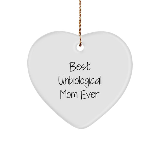 Unbiological Mom Gifts - Funny Heart Ornament for Best Unbiological Mom Ever, Christmas Unique Gifts from Friends, Family