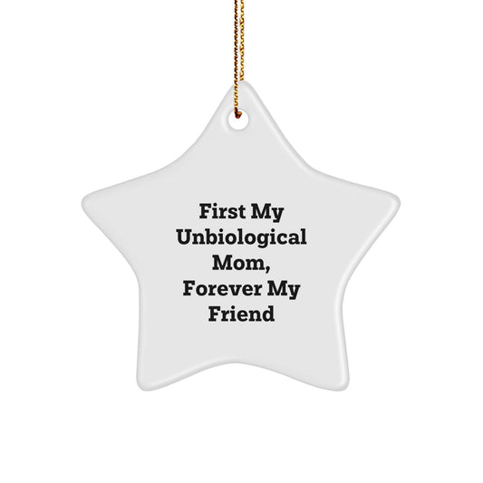 Funny Unbiological Mom Gifts - First My Unbiological Mom, Forever My Friend Star Ornament, Christmas Unique Gifts from Women to Unbiological Mom