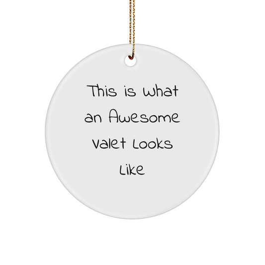 Funny Valet Quotes Gifts for Men, Circle Ornament with White Color, 'This Is What An Awesome Valet Looks Like' - Gifts from Family, Friends, or Coworkers for Christmas