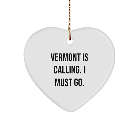 Vermont Gifts: 'Vermont Is Calling. I Must Go.' Heart Ornament, Christmas Unique Gifts from Friends