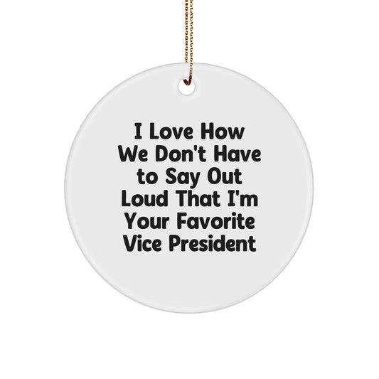 Funny Vice President Gifts from Men to Friends - I Love How We Don't Have To Say Out Loud That I'm Your Favorite Vice President Circle Ornament, White, Christmas Unique Gifts