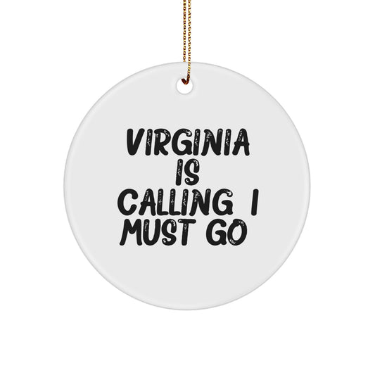 Virginia Calling Gifts from Friends: Funny Circle Ornament for Virginia Lovers, Christmas Unique Present for Her, Him, Family, or Coworkers
