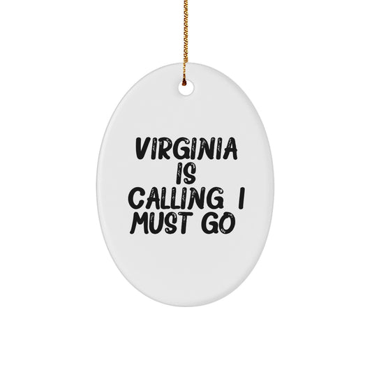 Virginia Calling Oval Ornament, Funny Quote Gifts for Virginia, Christmas Unique Gifts from Friends, Family, or Coworkers