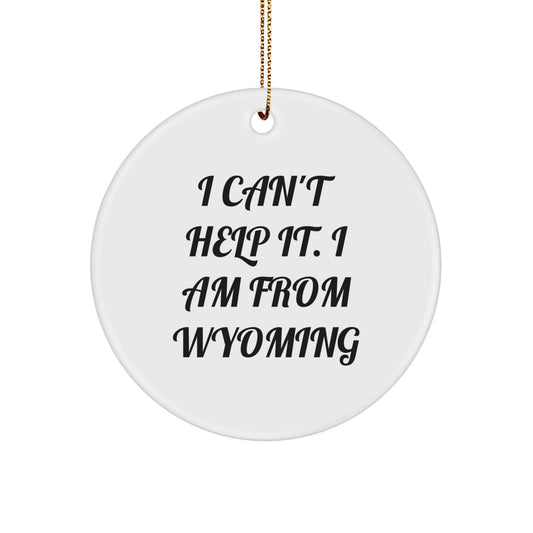 Wyoming Circle Ornament with Funny Quote, Gifts from Wyoming, Christmas Unique Gifts for Friends and Family, I Can't Help It. I Am From Wyoming