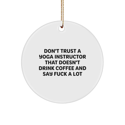 Funny Yoga Instructor Gifts from Friends, Gifts for Yoga Instructors, Circle Ornament, 'Don't Trust A Yoga Instructor That Doesn't Drink Coffee And Say F--k A Lot' - Christmas Unique Gift