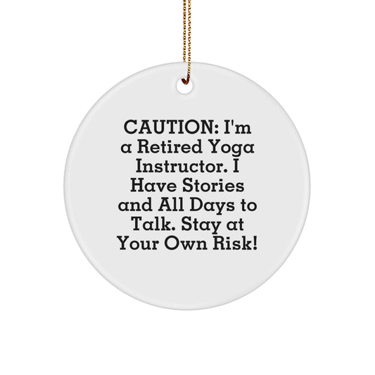Funny Yoga Instructor Gifts from Friends - Caution: I'm A Retired Yoga Instructor. I Have Stories And All Days To Talk. Stay At Your Own Risk! Circle Ornament for Yoga Instructors