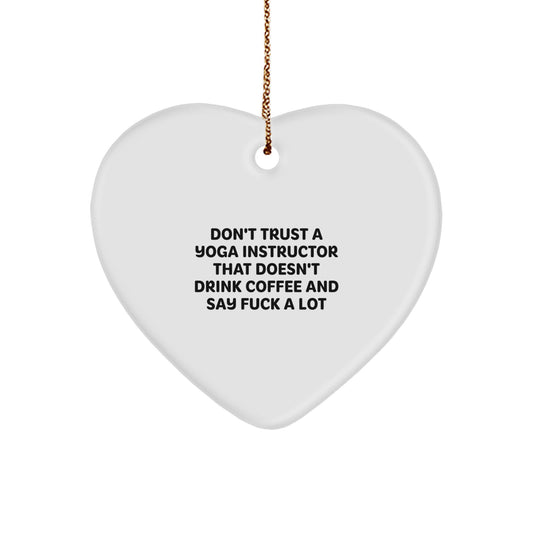 Funny Yoga Instructor Gifts from Friends - Don't Trust A Yoga Instructor That Doesn't Drink Coffee And Say F--k A Lot, Heart Ornament for Christmas