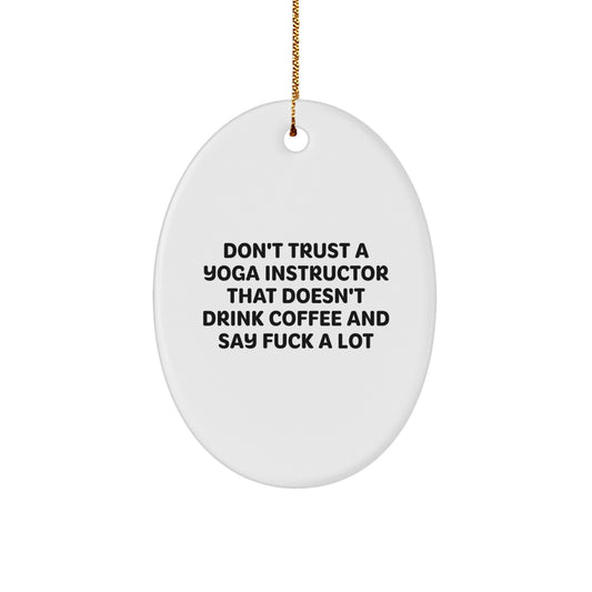 Yoga Instructor Gifts from Friends - Funny Oval Ornament with 'Don't Trust A Yoga Instructor That Doesn't Drink Coffee' - Unique Christmas Unique Gifts for Yoga Instructors