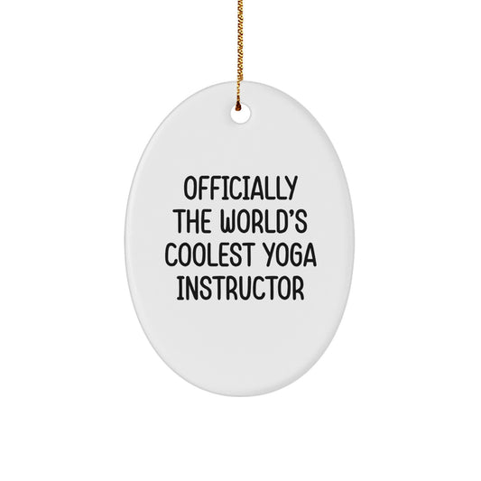 Funny Yoga Instructor Gifts for Her from Family - 'Officially The World's Coolest Yoga Instructor' Oval Ornament for Christmas