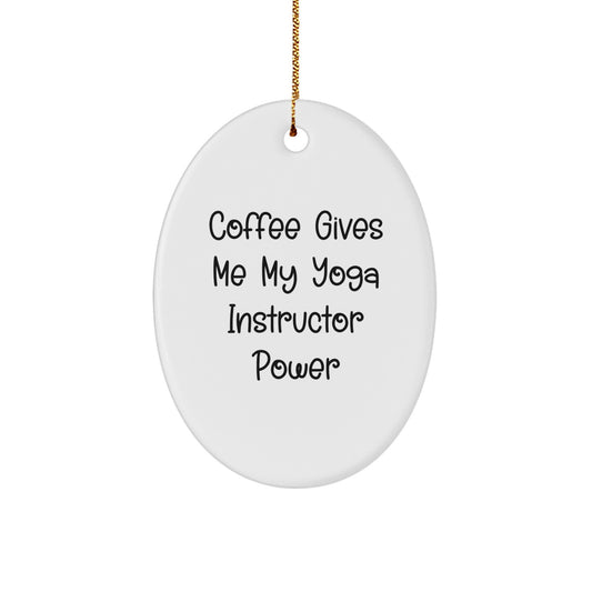 Funny Yoga Instructor Gifts from Friends, Get Her 'Coffee Gives Me My Yoga Instructor Power' Oval Ornament for Christmas