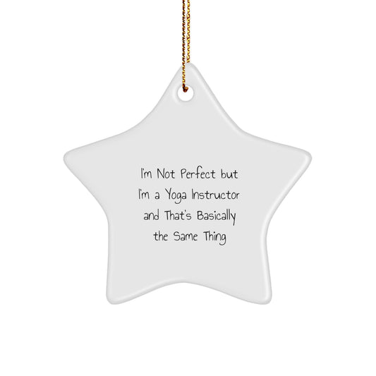 Funny Yoga Instructor Gifts from Friends for Christmas - 'I'm Not Perfect But I'm A Yoga Instructor And That's Basically The Same Thing' Star Ornament for Women or Men