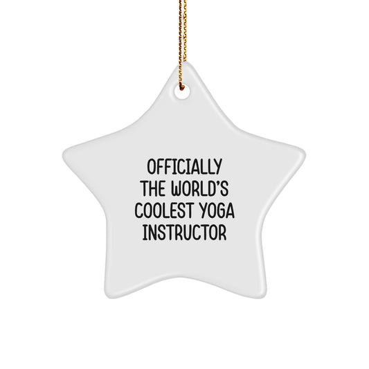 Funny Yoga Instructor Gifts from Men to Women - 'Officially The World's Coolest Yoga Instructor' Star Ornament for Christmas