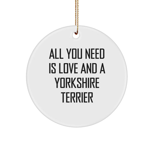 Yorkshire Terrier Dog Lovers Gifts from Friends for Christmas Decoration Circle Ornament, 'All You Need Is Love And A Yorkshire Terrier' Quote, Unique Presents for Men, Women, Family
