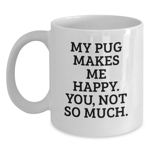 Funny Pug Dog White Coffee Mug Gifts for Graduation, 'My Pug Makes Me Happy, You Not So Much' Quote, Ideal Gifts from Friends, Family, or Coworkers to Pug Dog Lovers