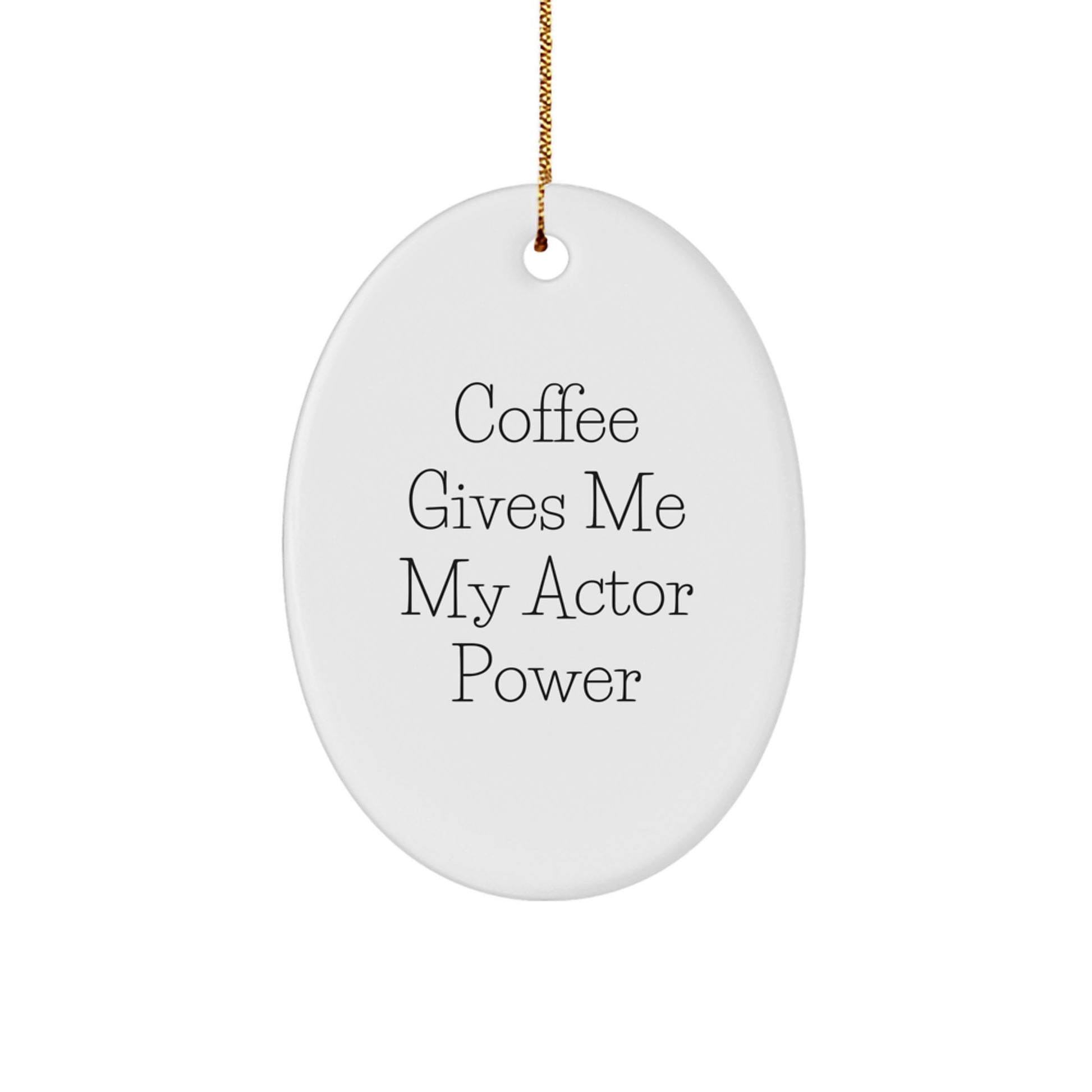 - This oval ornament is a thoughtful gift for actors, friends, family, or coworkers who love the performing arts. The quote 'Coffee Gives Me My Actor Power' is a funny and relatable tribute to the actor's craft.