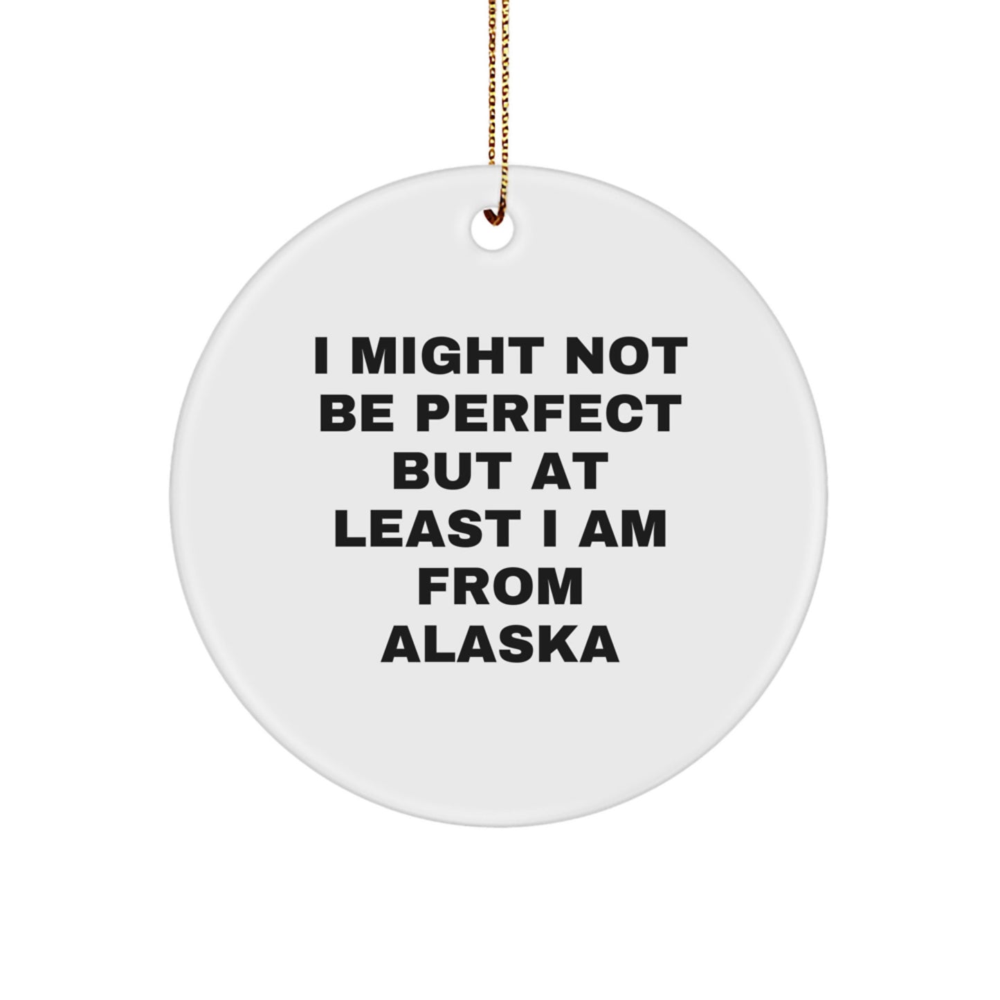 Alaska Circle Ornament Gifts from Men to Friends - I Might Not Be Perfect But At Least I Am From Alaska, Funny Alaska Gifts for Christmas