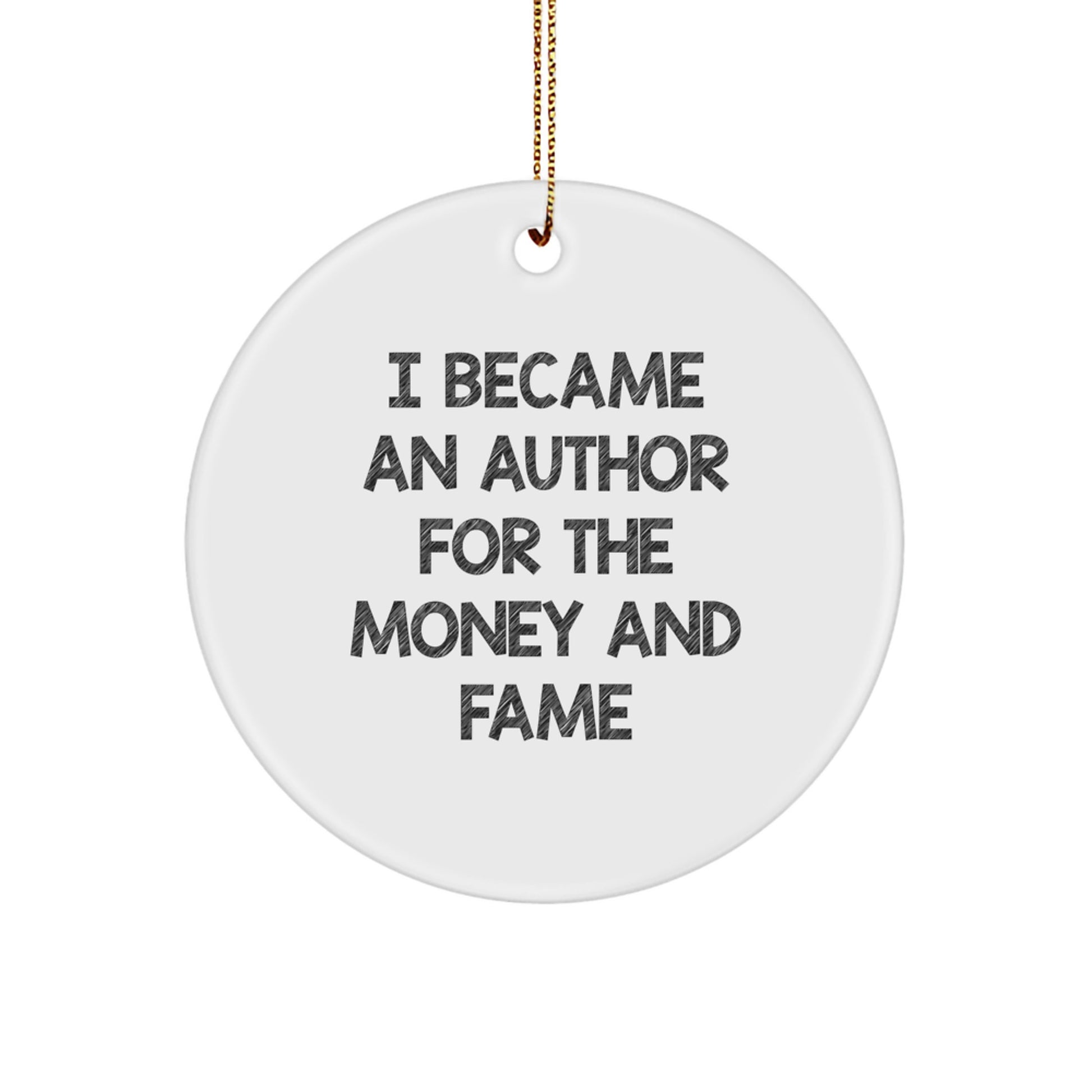 - This Author Circle Ornament is the ideal gift for any author enthusiast. The quote on this ornament is a humorous take on the often-maligned profession of authorship. It's a lighthearted reminder that becoming an author can be a path to fame and fortune.