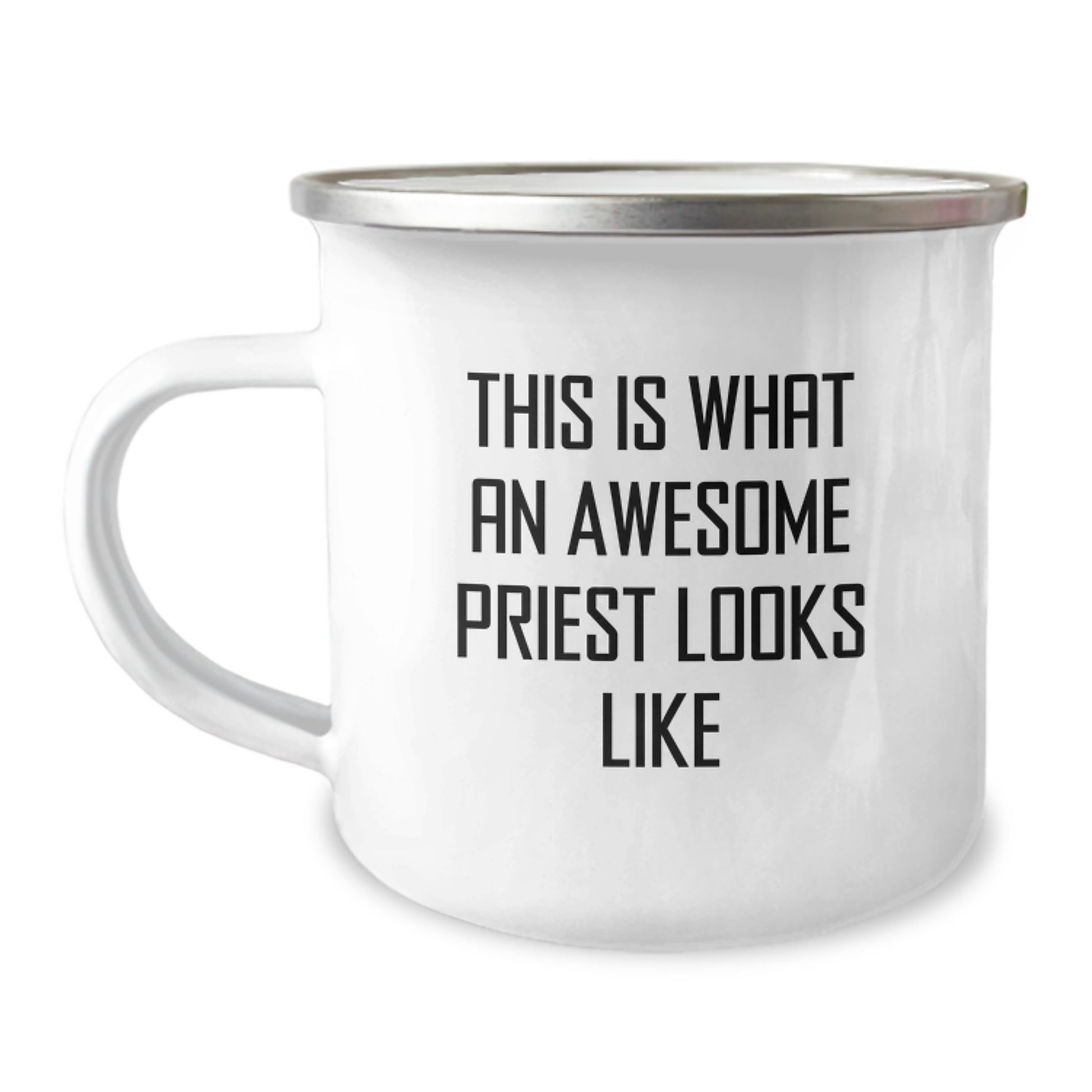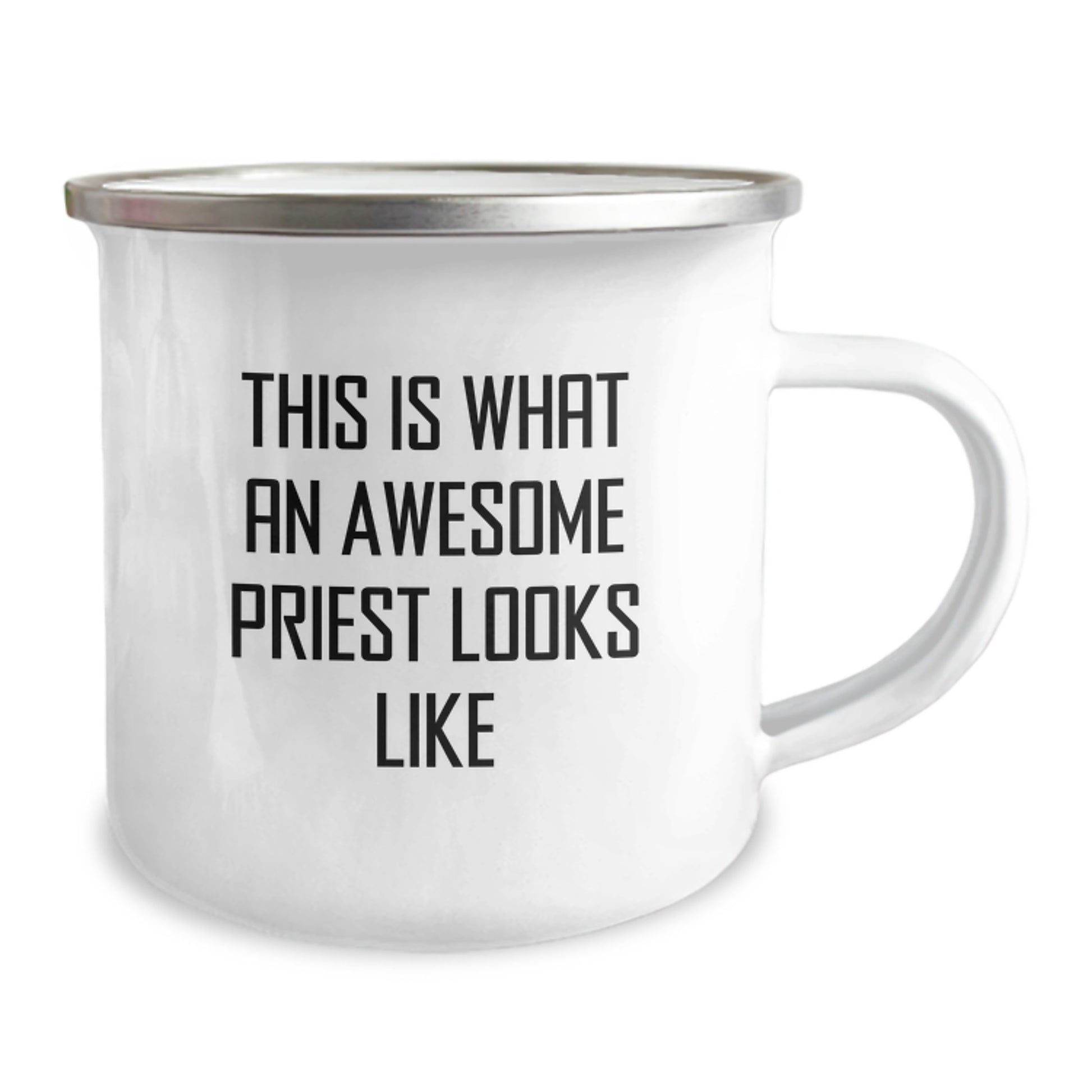 - Celebrate your Priest's birthday with a unique and thoughtful gift - a personalized 'This Is What An Awesome Priest Looks Like' Camping Mug. The perfect way to show your appreciation for their hard work and dedication.