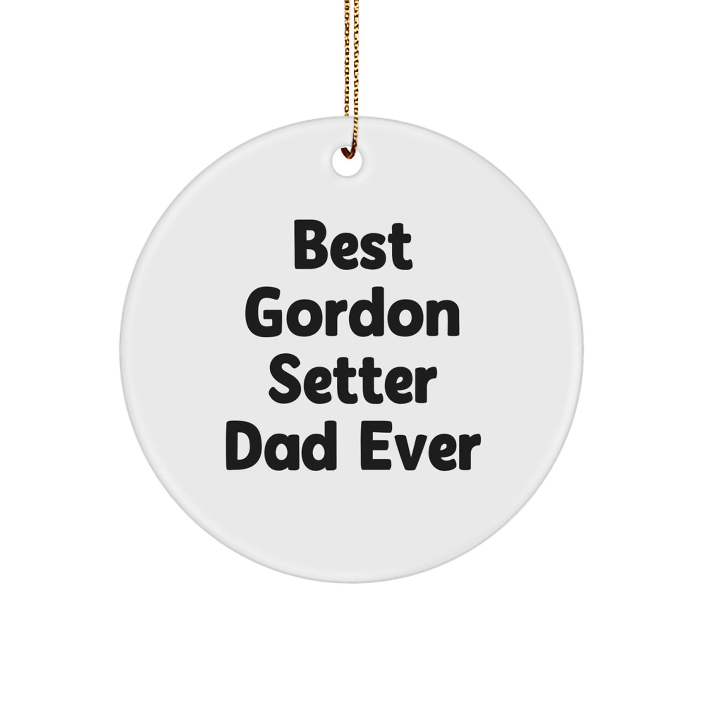 - Showcase your love for Gordon Setter dogs with this unique 'Best Gordon Setter Dad Ever' circle ornament, perfect for decorating your Christmas tree or giving as a thoughtful gift to fellow dog lovers.