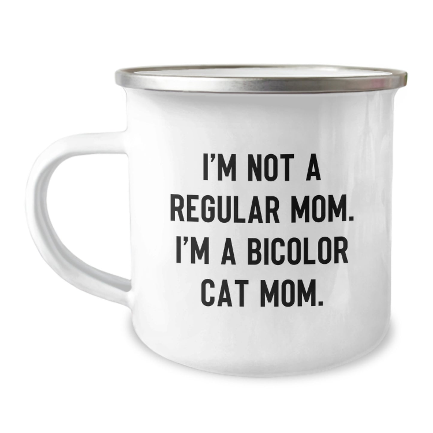 Bicolor Cat Mom Gifts from Family for Graduation Unique Gifts, Funny Bicolor Cat Mom Camping Mug, I'm Not A Regular Mom. I'm A Bicolor Cat Mom.
