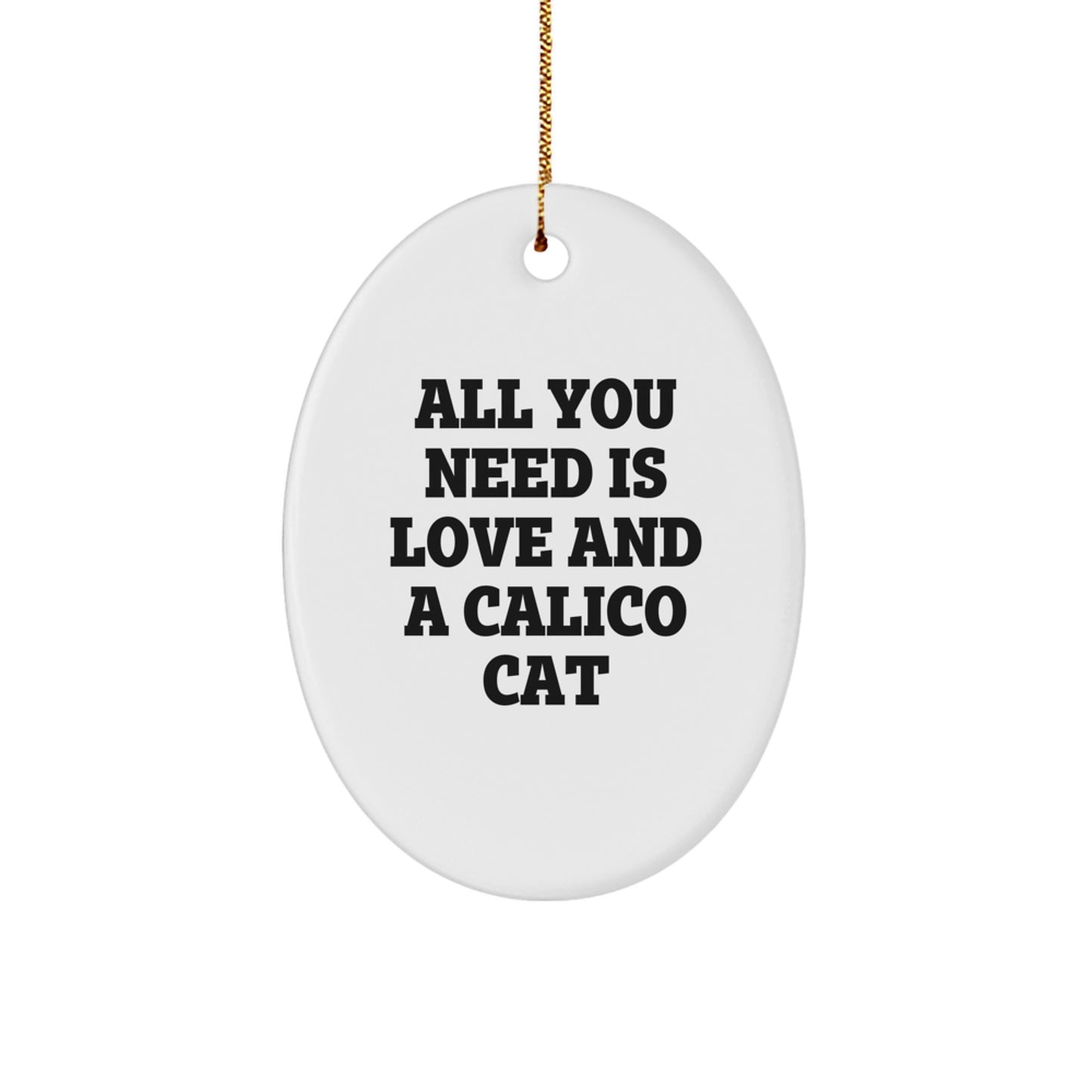 Calico Cat Oval Ornament, 'All You Need Is Love And A Calico Cat' Funny Christmas Unique Gift for Friends, Family, or Coworkers