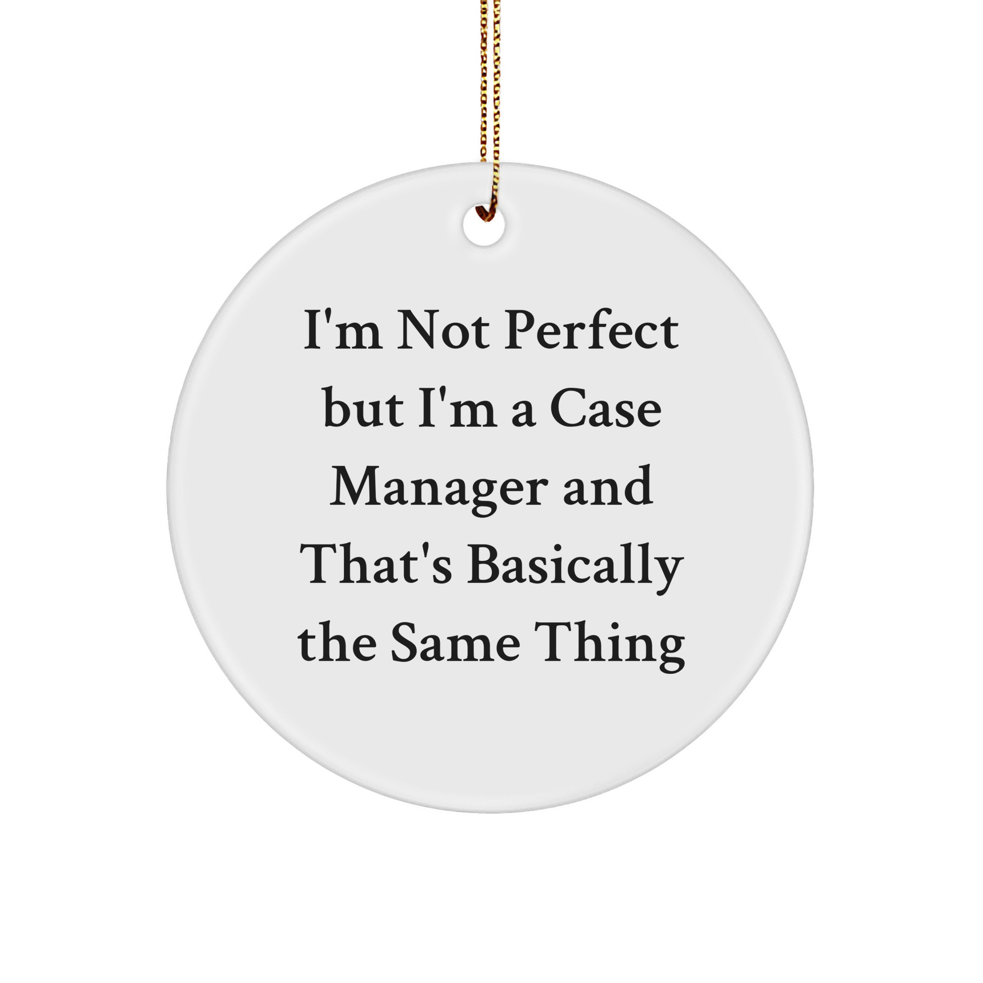 This Circle Ornament is crafted from high-quality MDF and features a high-gloss plastic finish, ensuring that the design remains bright and vivid. The quote 'I'm Not Perfect But I'm A Case Manager And That's Basically The Same Thing' is printed from edge-to-edge via Sublimation, making it a beautiful addition to any room. And with its lightweight and resistant design, it's perfect for households with children or pets.
