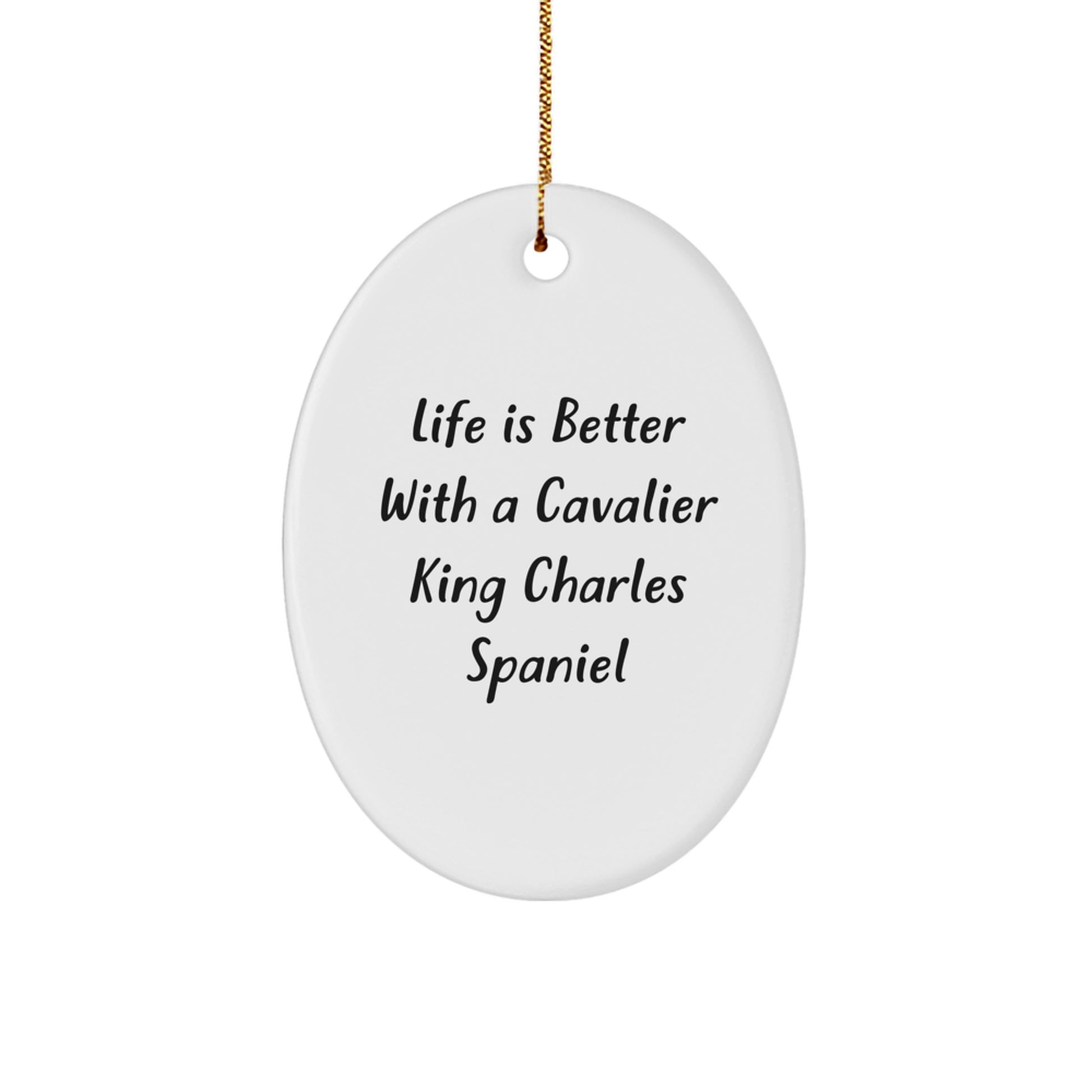 - This Cavalier King Charles Spaniel Dog Oval Ornament is the ideal gift for friends, family, or coworkers who adore these lovable dogs. It's a thoughtful way to show your appreciation and thoughtfulness. The quote 'Life Is Better With A Cavalier King Charles Spaniel' is a beautiful reminder of the joy these dogs bring to our lives.