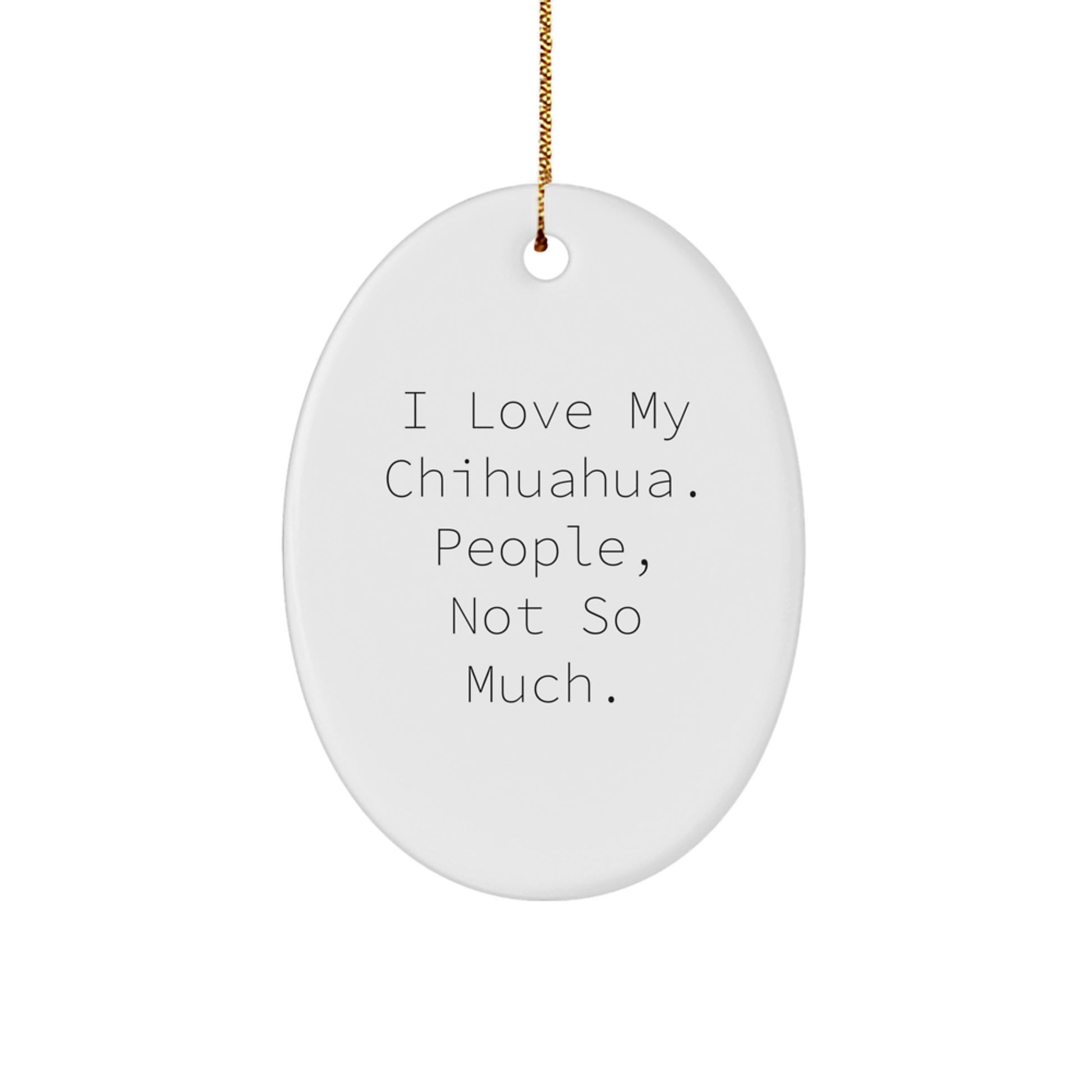 - This unique oval ornament is a thoughtful gift for any Chihuahua dog lover, featuring the funny quote 'I Love My Chihuahua. People, Not So Much.'