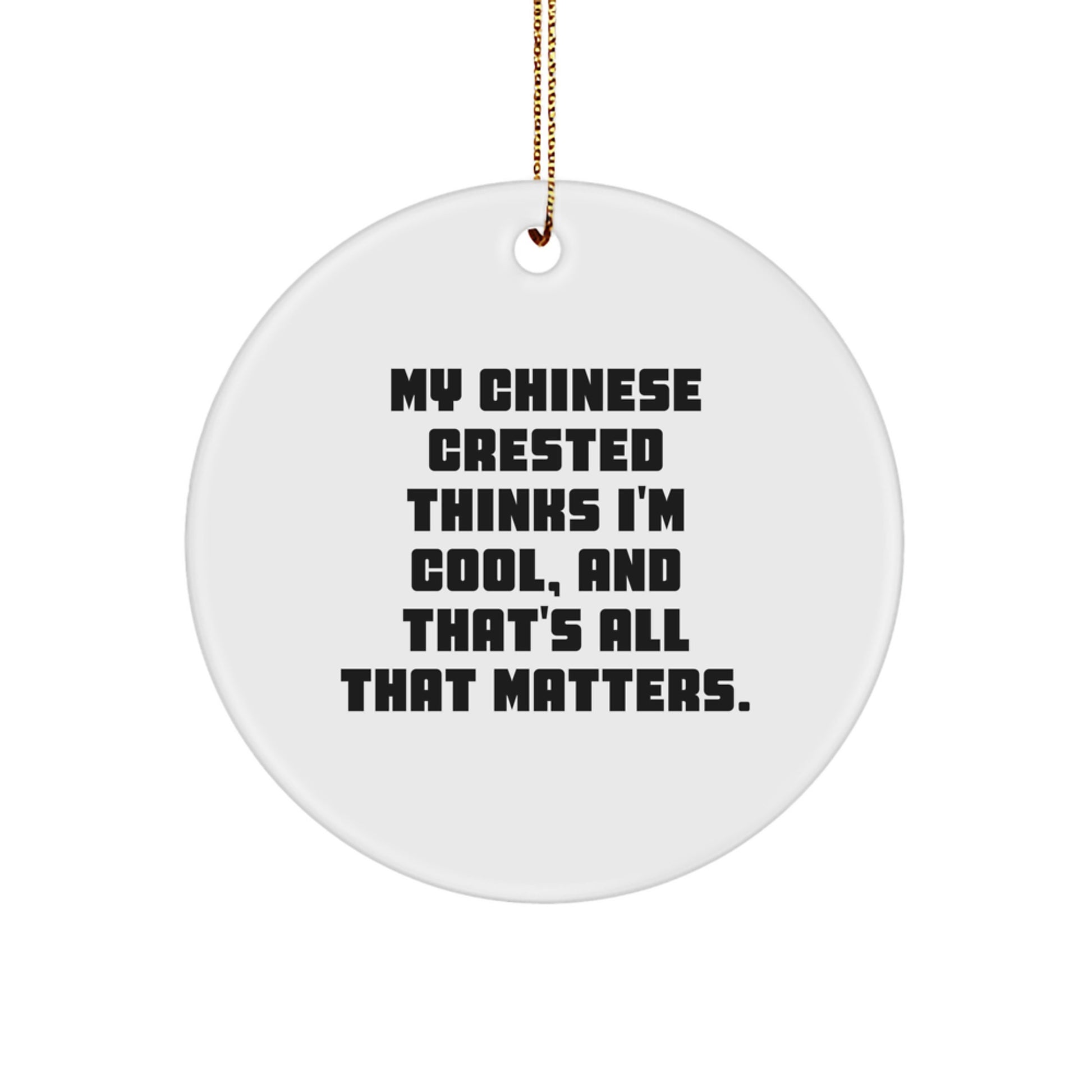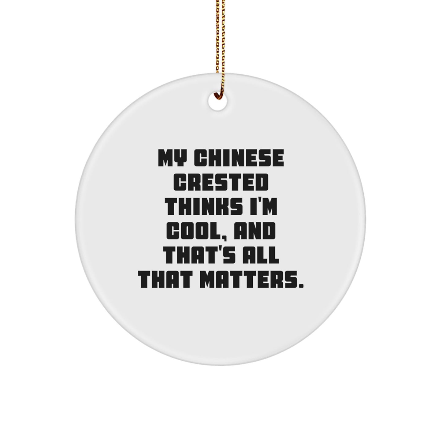 - This Circle Ornament is a thoughtful gift for Chinese Crested Dog lovers, featuring a funny quote that's sure to bring a smile to their face.