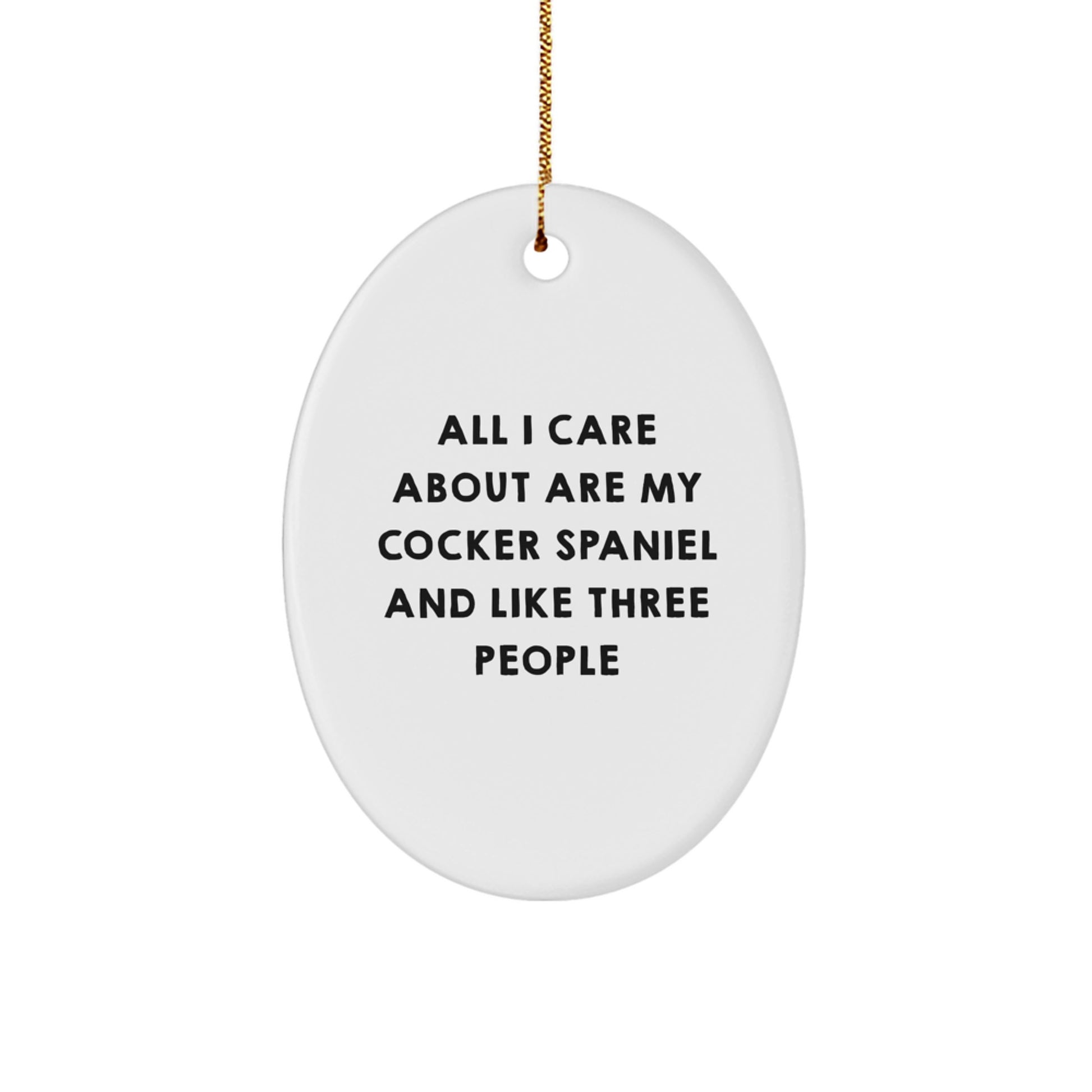 Cocker Spaniel Dog Lovers' Christmas Unique Gift, Funny Oval Ornament for Men, Women, Friends, Family, 'All I Care About Are My Cocker Spaniel And Like Three People'
