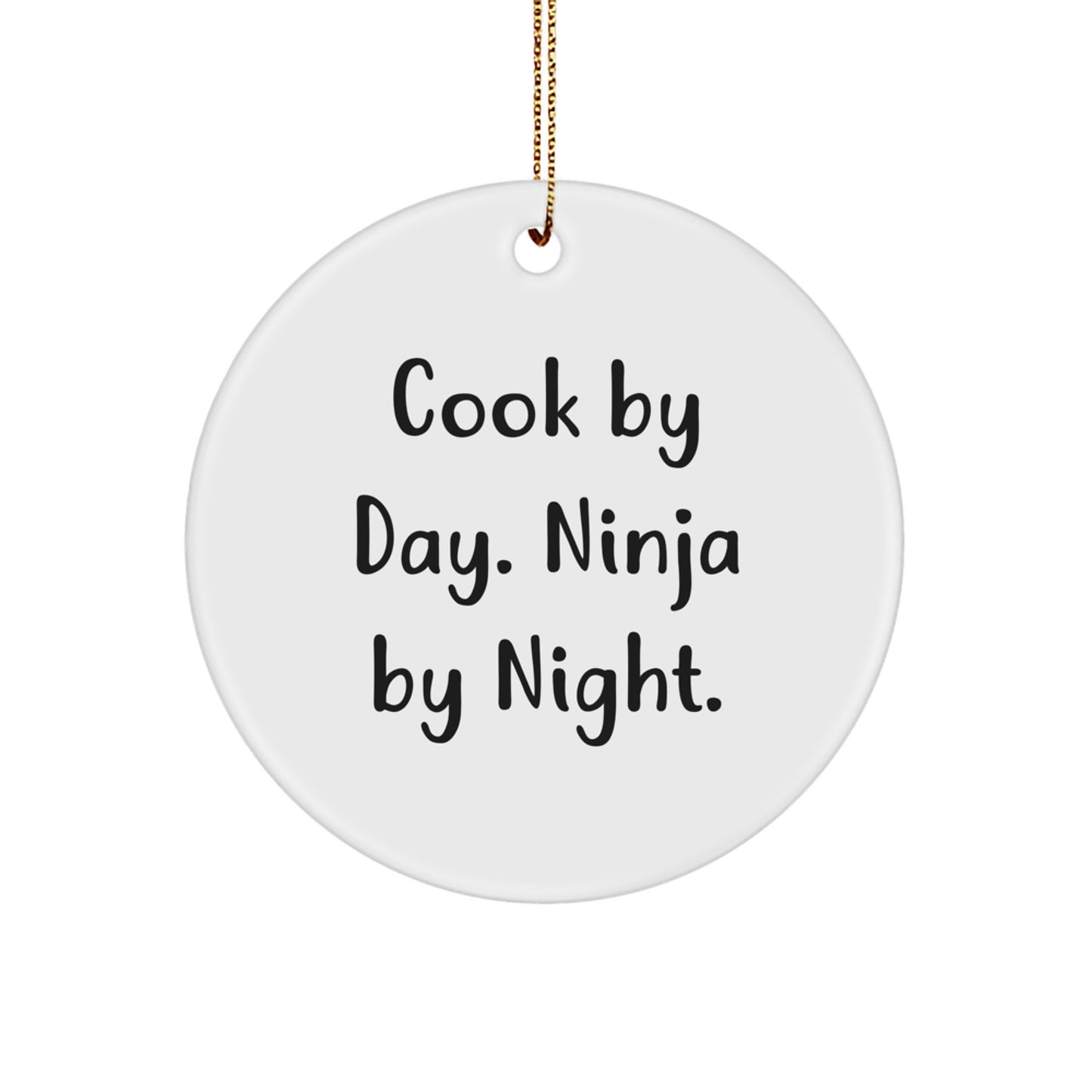 Cook By Day. Ninja By Night. Funny Christmas Unique Gifts for Cooks, Circle Ornament for Men, Women, Friends, Coworkers, Family