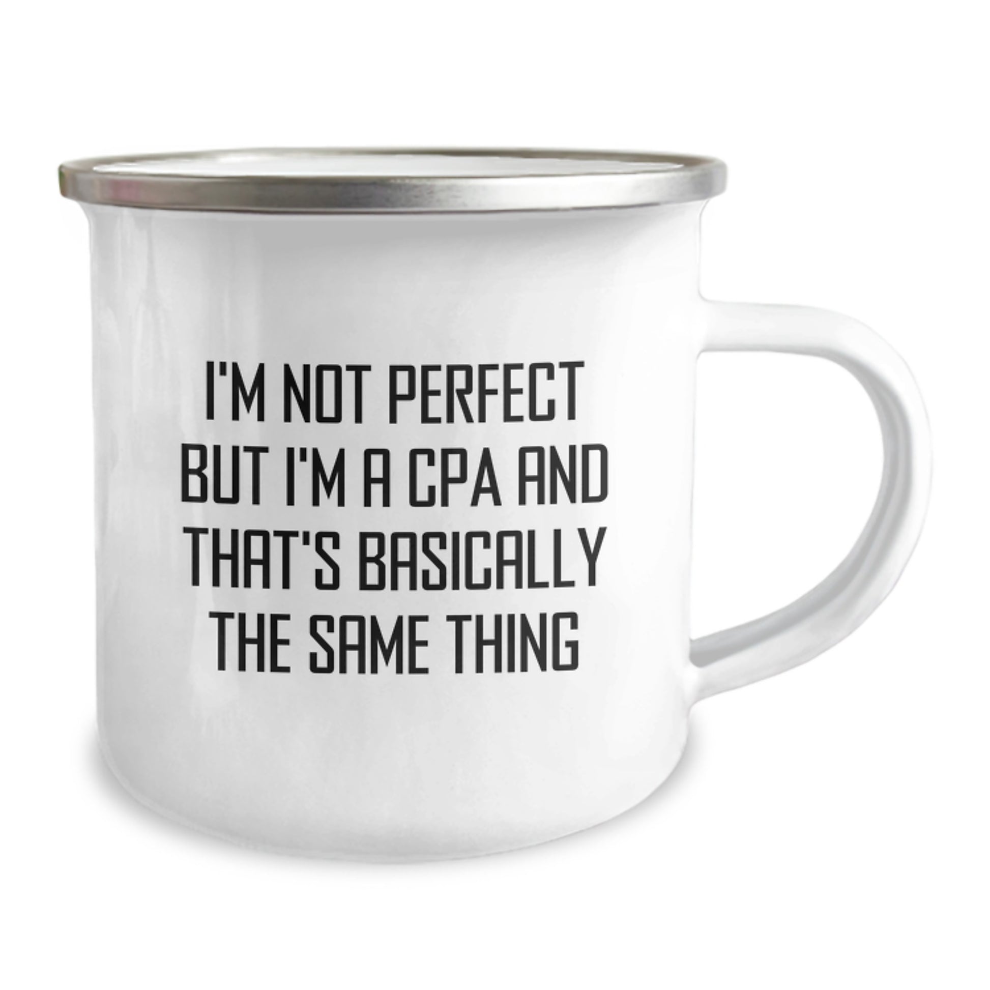 If you're a CPA enthusiast or looking for a gift for a CPA in your life, this Camping Mug is the perfect choice. With a 12 oz capacity and stainless steel with enamel finish, it's sturdy and easy to clean. The quote 'I'm Not Perfect But I'm A Cpa And That's Basically The Same Thing' adds a touch of humor to any camping trip or daily use. Make it a birthday gift for your CPA friends and family, or send it as a funny gift from friends to coworkers. This Camping Mug is a great way to show your appreciation for a CPA's hard work and dedication. Whether you're a CPA yourself or just want to give a unique gift, this funny quote Camping Mug is sure to bring a smile to their face. So why wait? Get this funny CPA quote Camping Mug today and make it a birthday to remember!