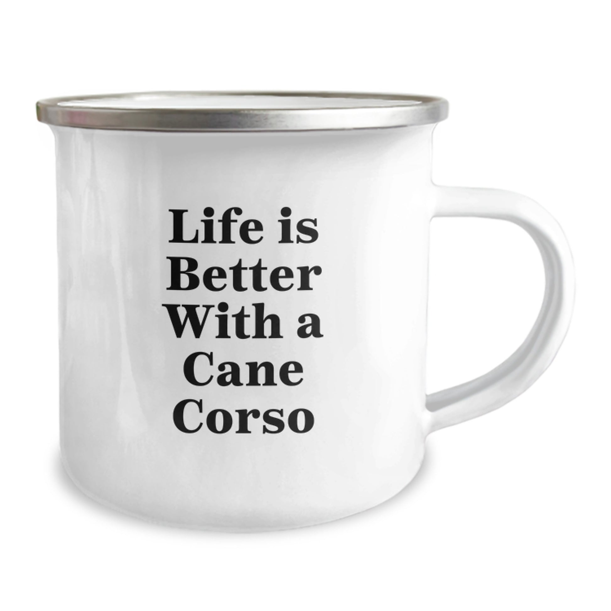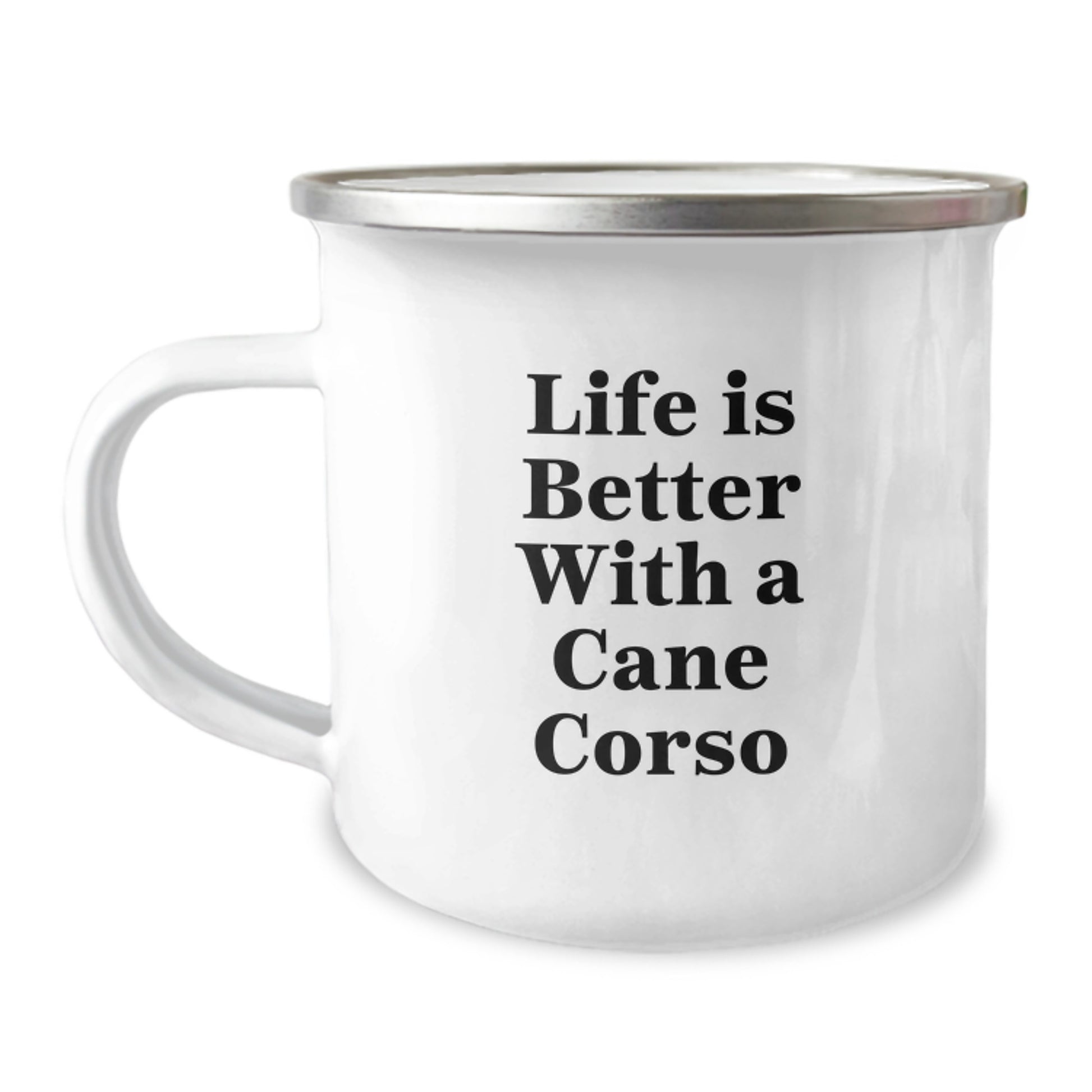 Cute Cane Corso Dog Gifts from Men for Cane Corso Dog Graduation Unique Gifts - Life Is Better With A Cane Corso Funny Quote Camping Mug, 12 oz Stainless Steel with Enamel Finish
