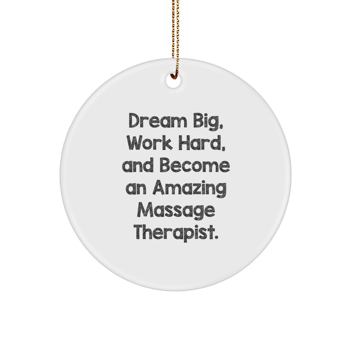 - This beautiful Circle Ornament is a unique gift idea for massage therapists, featuring a funny inspirational quote 'Dream Big, Work Hard, And Become An Amazing Massage Therapist' that will inspire and motivate them to pursue their dreams.