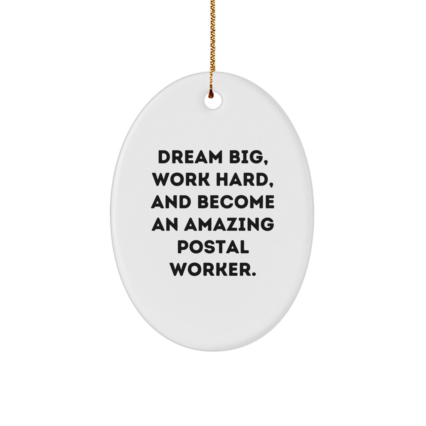 - Add a touch of festive fun to your holiday decor with this adorable Oval Ornament, which features a beautiful 'Dream Big, Work Hard, And Become An Amazing Postal Worker.' design. Its oval shape and white color make it a perfect addition to any Christmas tree or mantel.