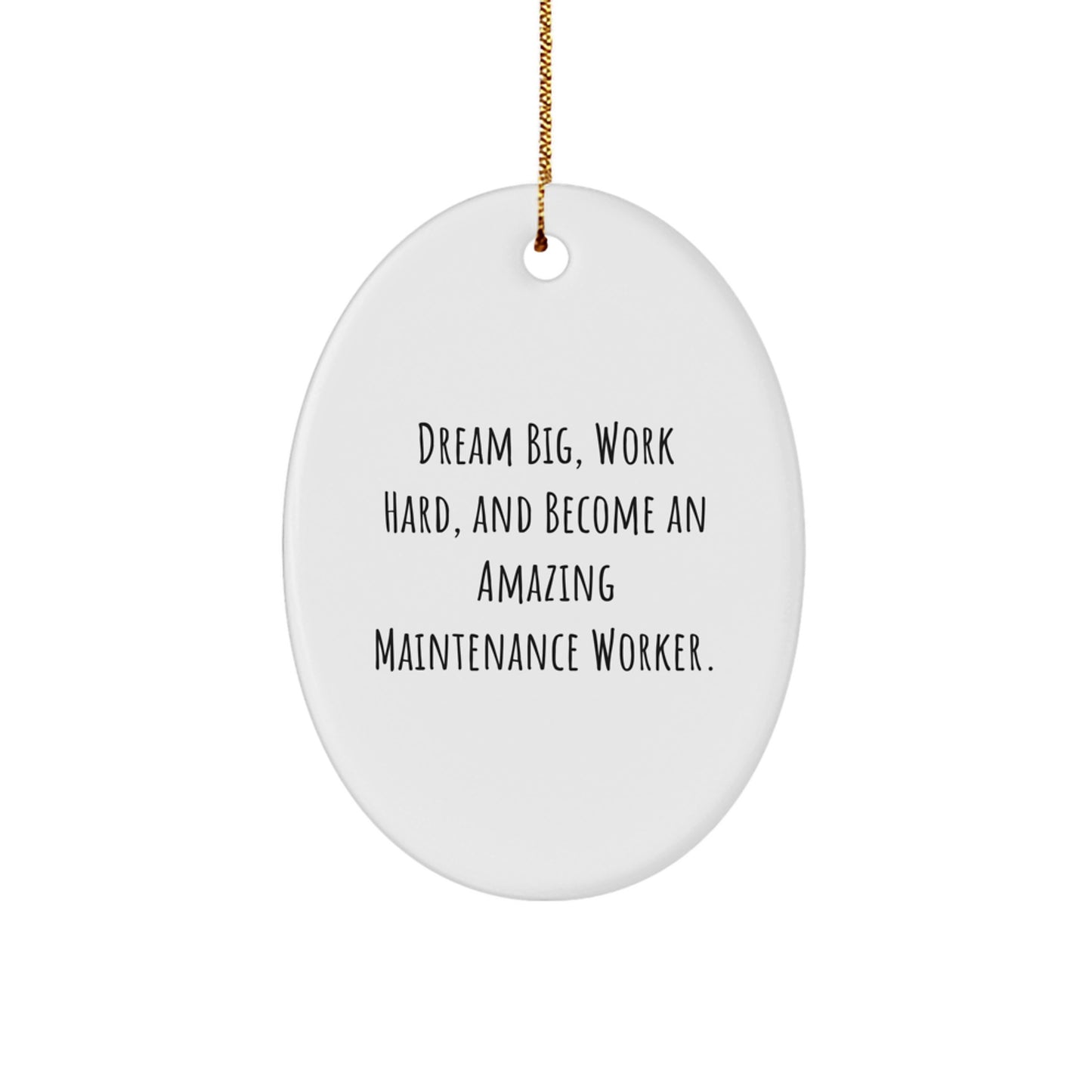 - Give the gift of inspiration to the Maintenance Worker in your life with our oval ornament. Featuring a unique design and a motivational message, it's the perfect way to encourage them to 'Dream Big' and 'Work Hard'.