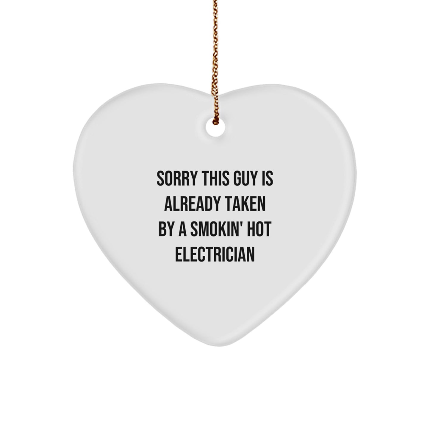 - The vibrant quote Sorry This Guy Is Already Taken By A Smokin' Hot Electrician adds a touch of humor to this Electrician Heart Ornament, making it a great conversation starter.