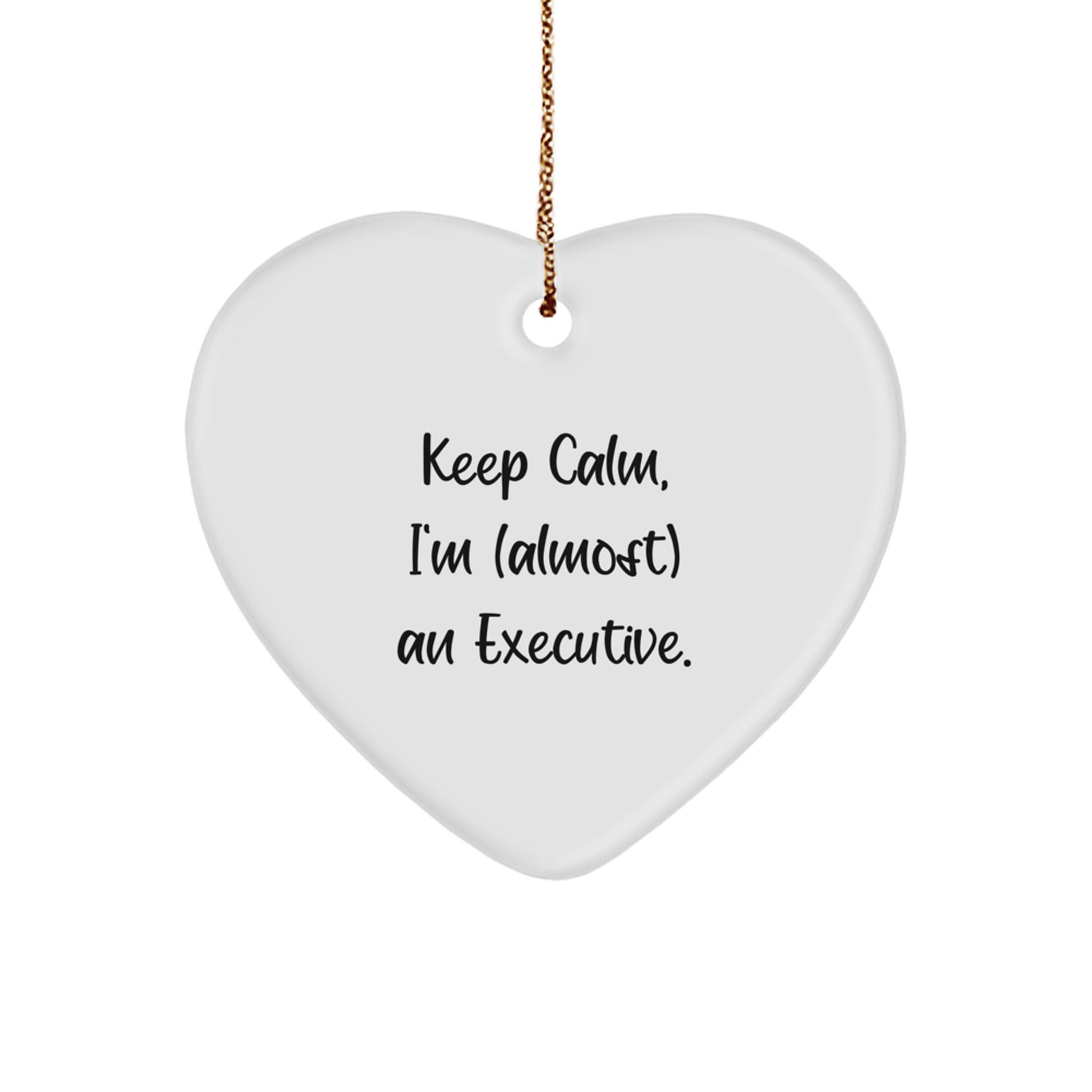 - Give the executive in your life a funny and unique keepsake that will bring a smile to their face. This Keep Calm I'm Almost an Executive Heart Ornament is the perfect way to show your friends, family, or coworkers that you care about their sense of humor.