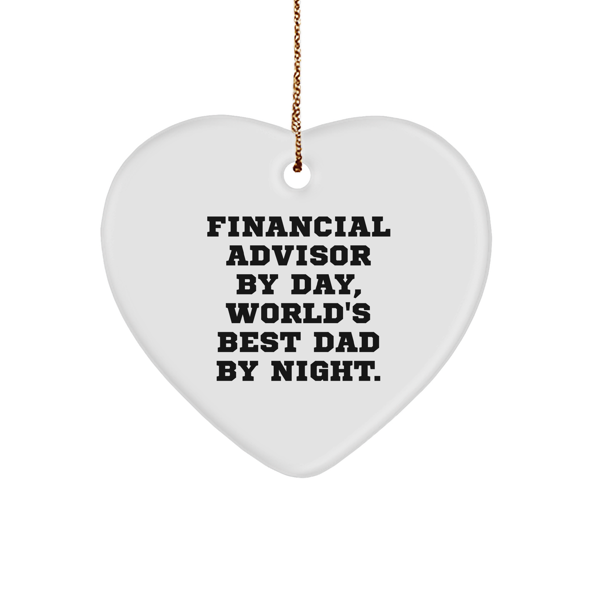 Financial Advisor Gifts, Heart Ornament, 'Financial Advisor By Day, World's Best Dad By Night.' Quote, Funny, Christmas Unique Gifts from Dad to Financial Advisor