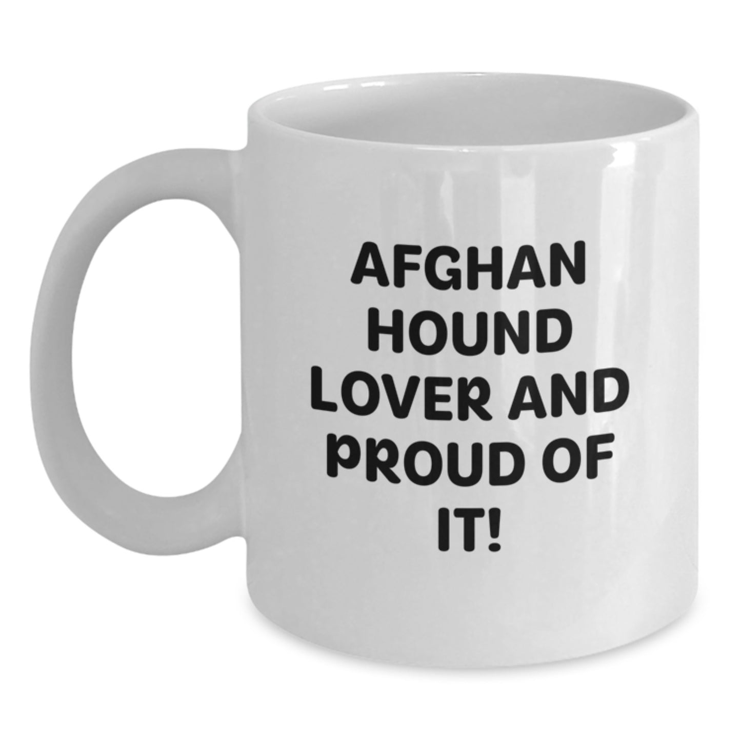 - Afghan Hound dog lovers will adore this 'Afghan Hound Lover And Proud Of It!' quote on a sturdy white ceramic coffee mug, perfect for their daily morning cup of joe or as a thoughtful birthday gift for friends and family. Made from high-quality ceramic, it's microwave and dishwasher safe, making it easy to clean and reuse.
