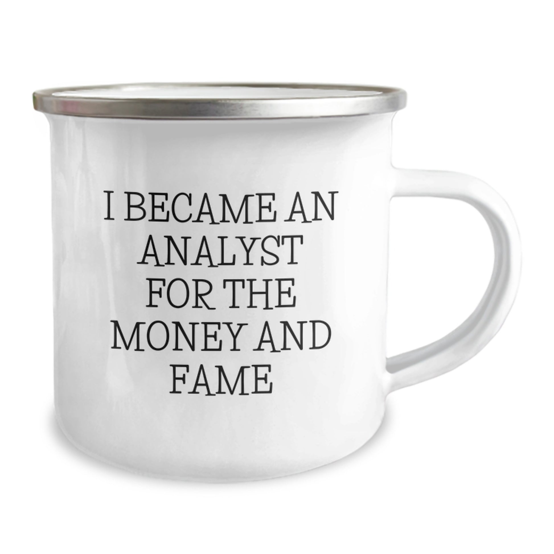 - Make your Analyst friend's day with this funny and unique gift, featuring the quote 'I Became An Analyst For The Money And Fame' in a Camping Mug that's perfect for hot beverages.