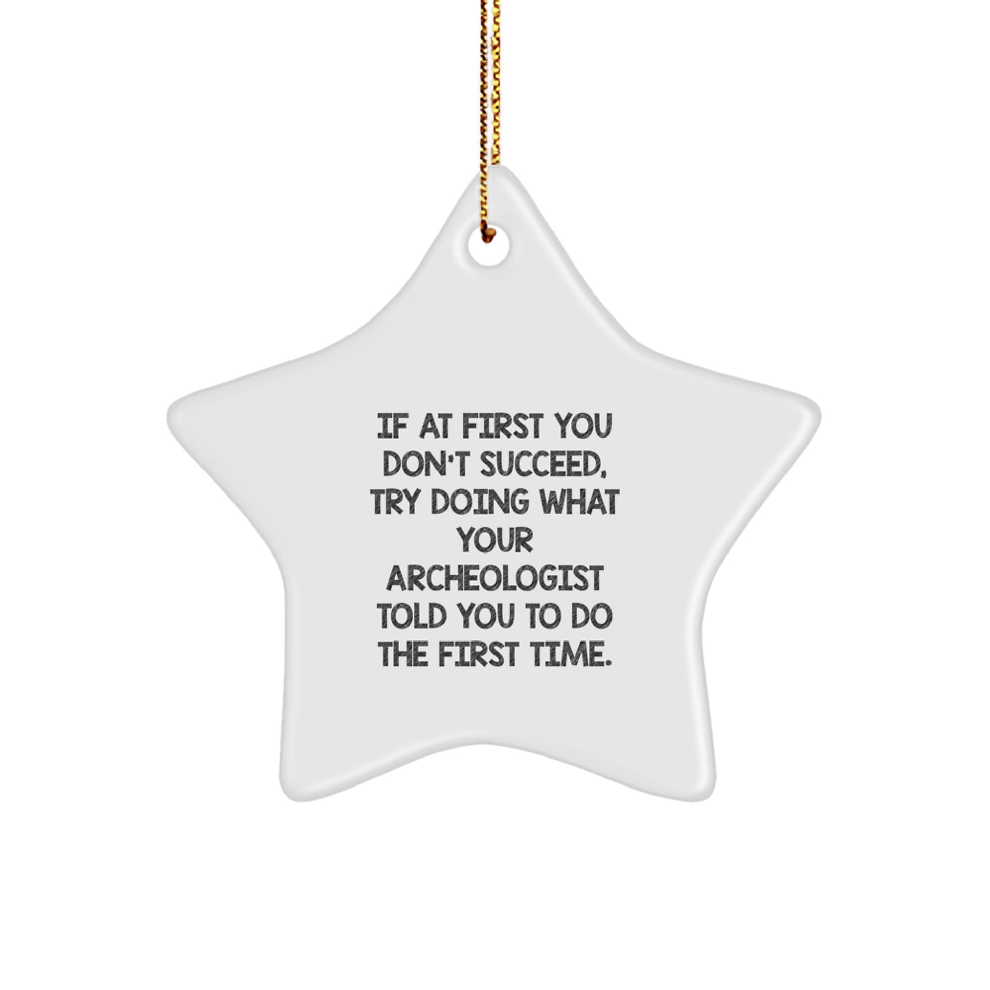 - Our 'If At First You Don't Succeed, Try Doing What Your Archeologist Told You To Do The First Time' Star Ornament is a unique and thoughtful gift for any Archeology enthusiast. Whether you're looking for a gift for a colleague, friend, or family member, this Star Ornament is the perfect choice.
