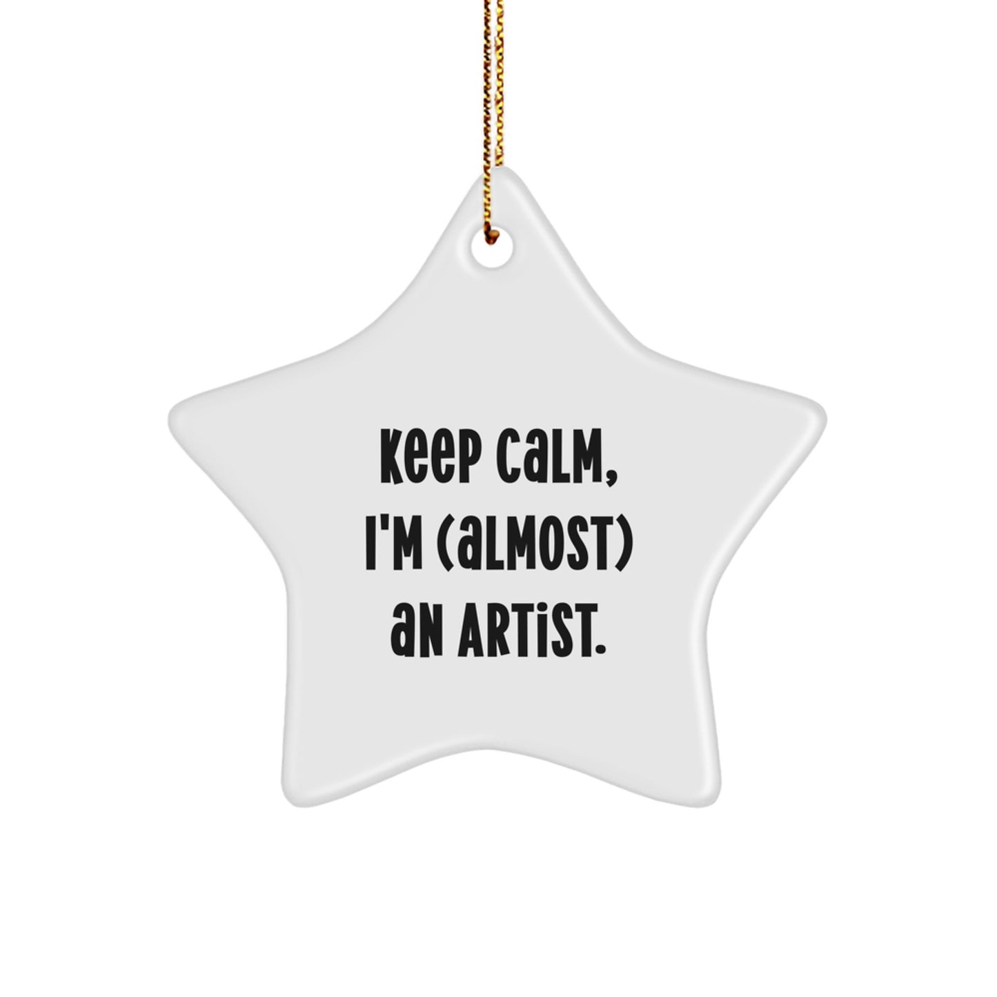 - Add a touch of humor to your artist's home or office with this funny 'Keep Calm, I'm (almost) An Artist.' star ornament. The vibrant printing and high-gloss finish ensure a long-lasting design that will bring a smile to their face every day.