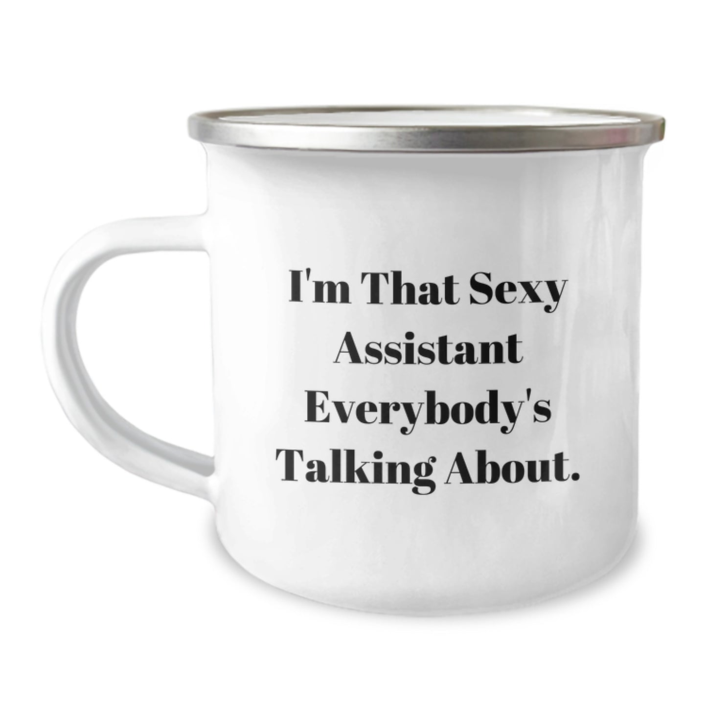 - Our 'I'm That Sexy Assistant Everybody's Talking About' Camping Mug is a great way to add some humor to your Assistant's day. Made from high-quality stainless steel with an enamel finish, this mug is both sturdy and long-lasting. Perfect for hot cocoa or tea, it's a thoughtful gift for any Assistant lover.