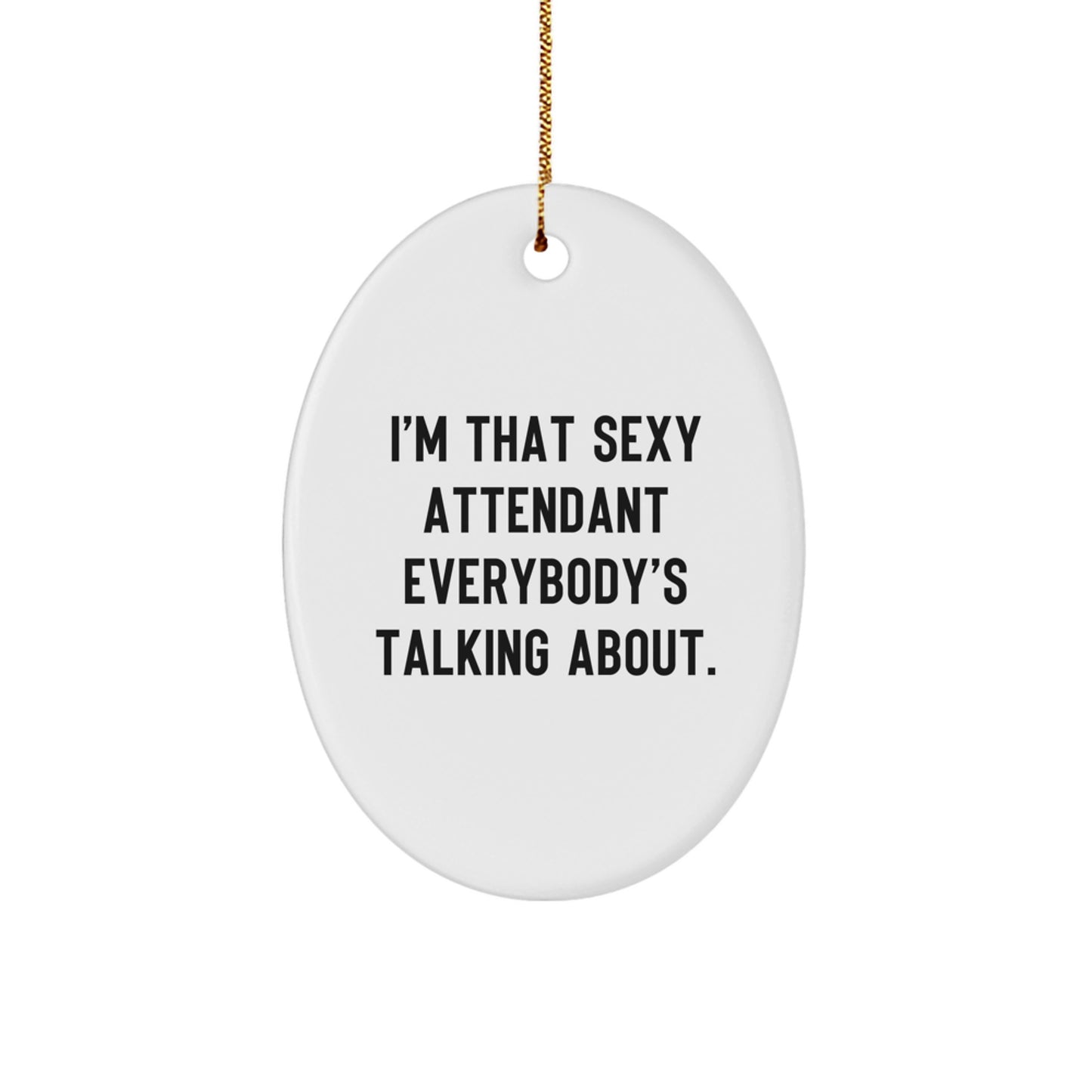- Add a touch of humor to your home or office with our Funny Oval Ornament, featuring the I'm That Sexy Attendant Everybody's Talking About quote. This unique gift is perfect for Attendants who bring a smile to your face every day.