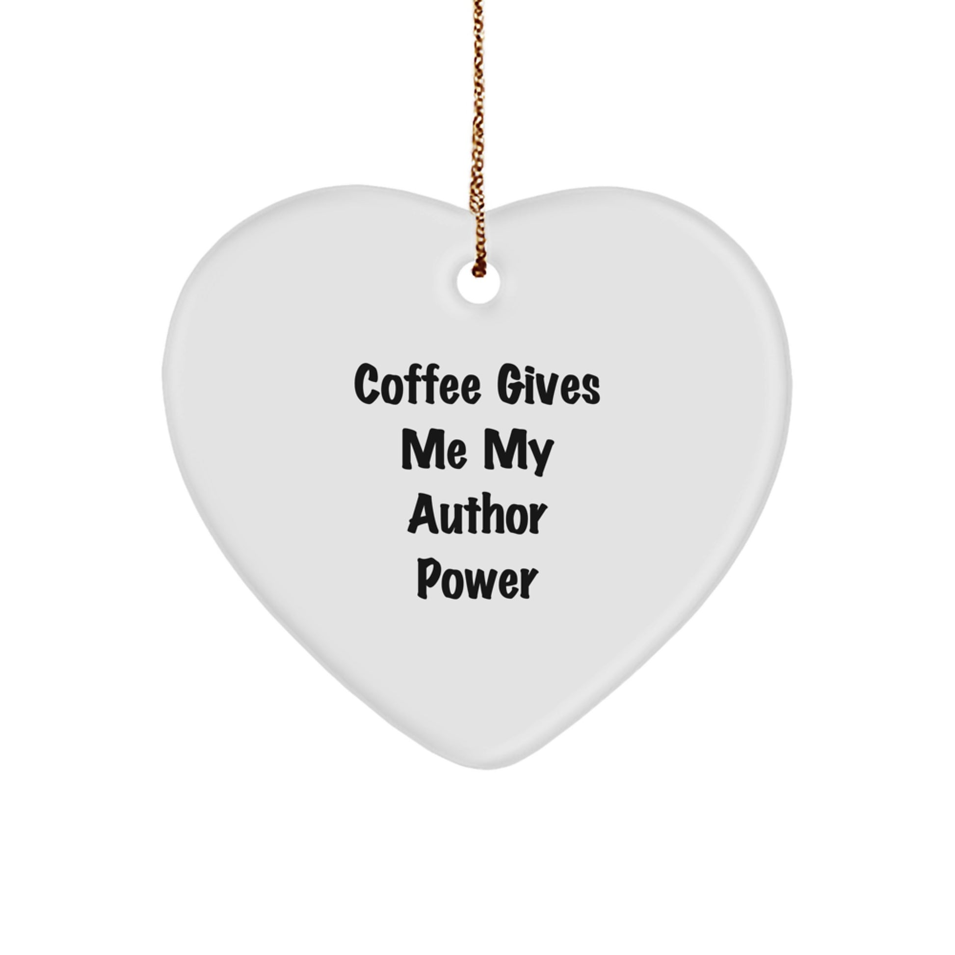 Funny Author Gifts from Friends - 'Coffee Gives Me My Author Power' Heart Ornament for Christmas