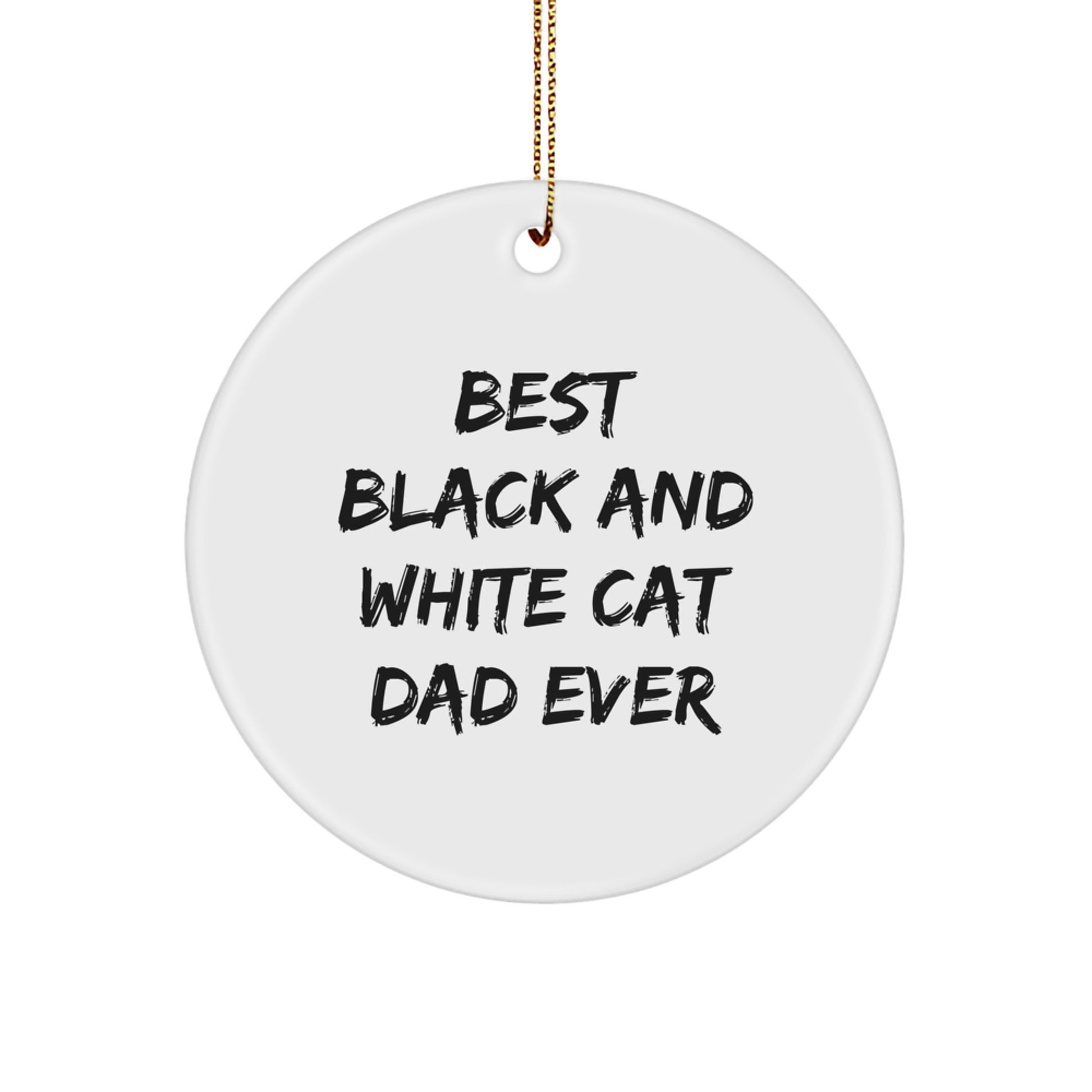 - Make a purr-fect addition to your holiday decor with our 'Best Black And White Cat Dad Ever' circle ornament, featuring a beautiful black and white cat design that's sure to delight cat lovers of all ages. This vibrant ornament is crafted from durable MDF with a high-gloss plastic finish, ensuring it will retain its bright colors and shiny finish for years to come.