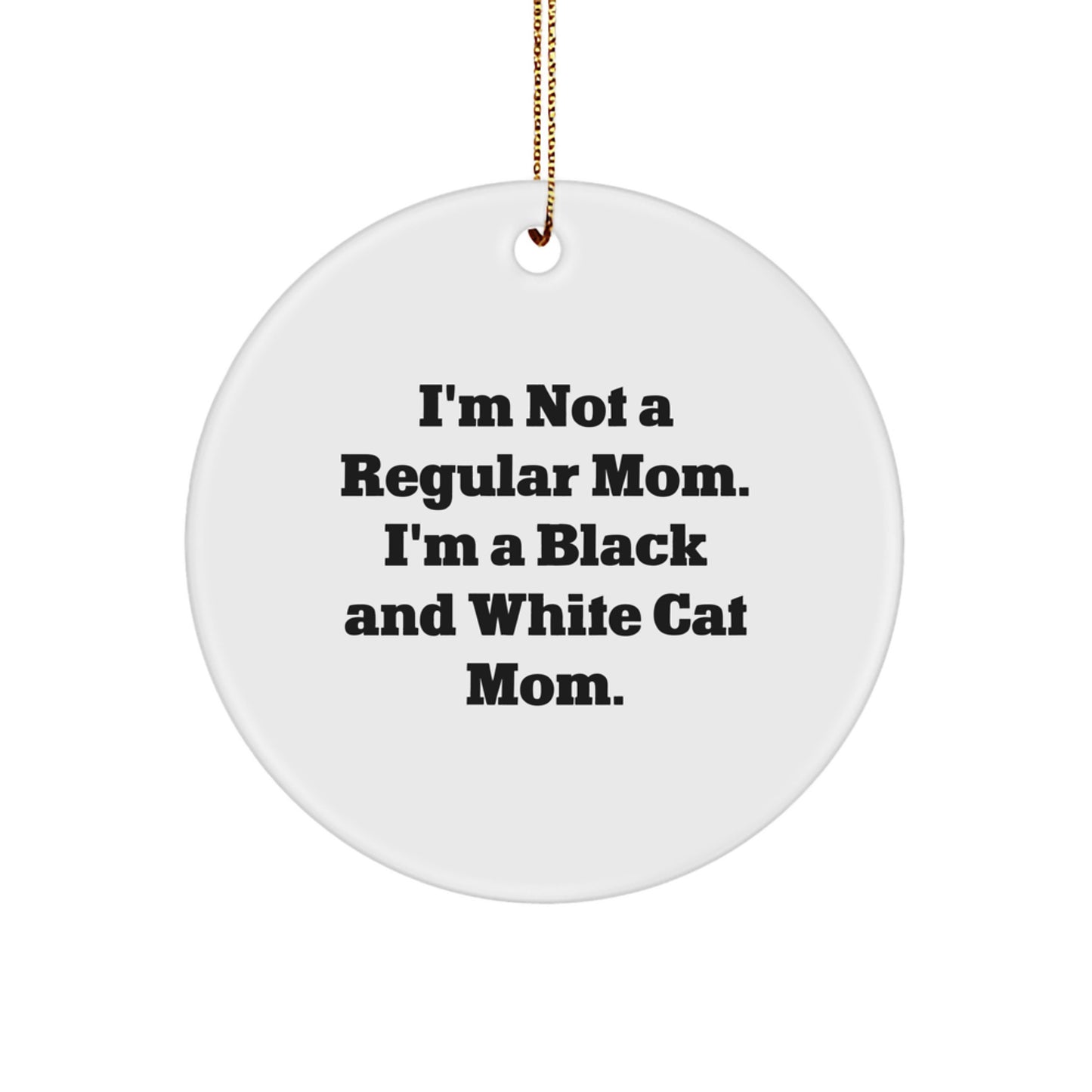 Funny Black and White Cat Mom Gifts from Friends - 'I'm Not A Regular Mom...' Circle Ornament for Christmas