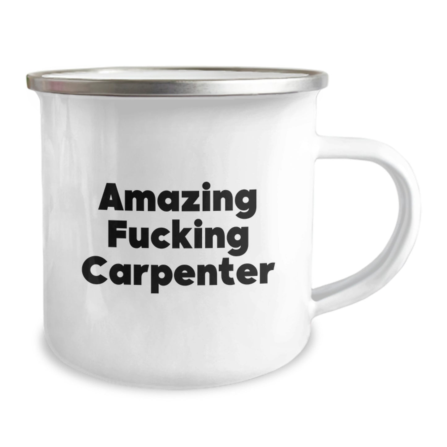 - Give the gift of humor and functionality with this funny camping mug featuring the 'Amazing F--king Carpenter' quote. Perfect for the Carpenter in your life who loves to camp and stays hydrated on the go.