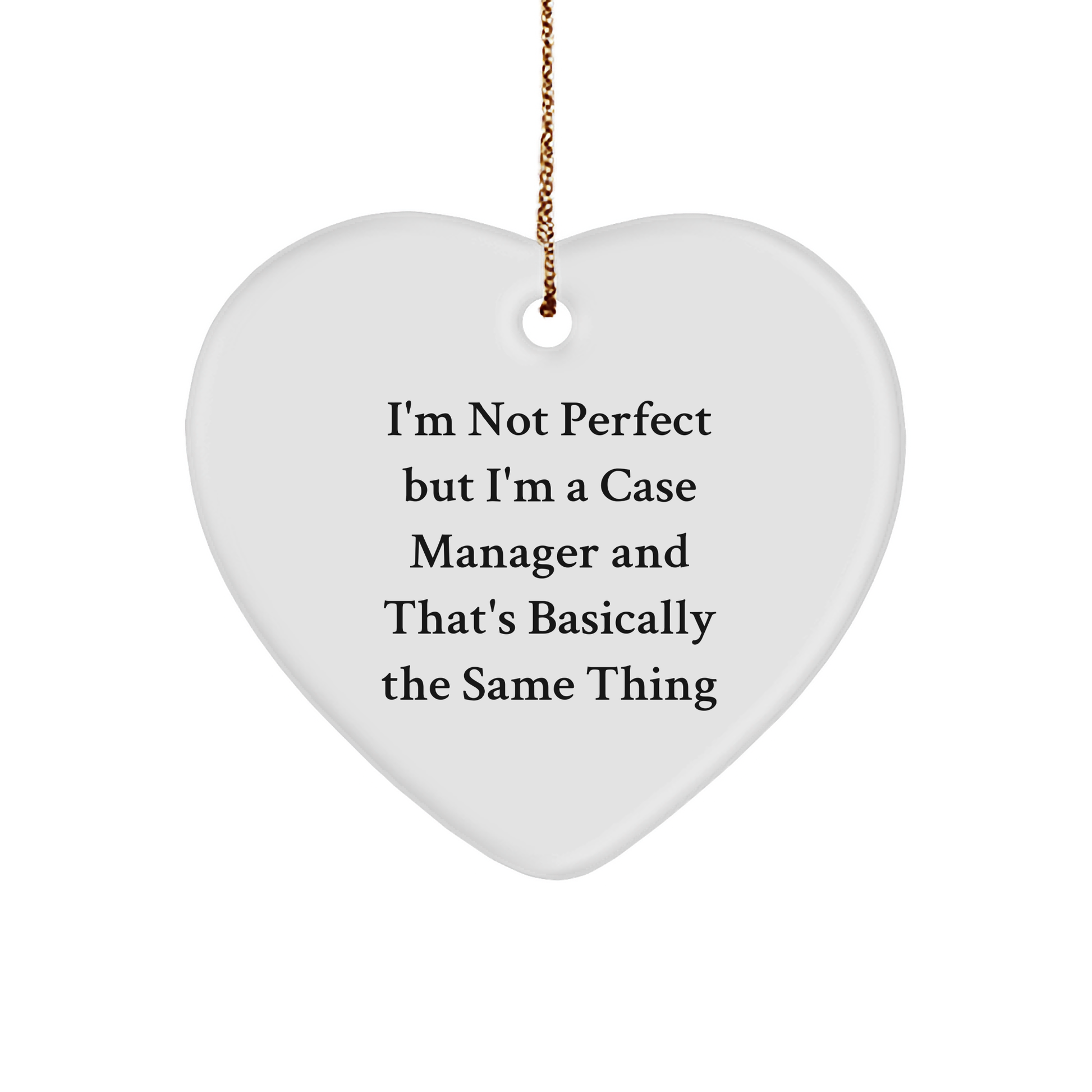 - This heart-shaped ornament is the perfect way to show your appreciation for the Case Manager in your life, featuring the funny and relatable quote 'I'm Not Perfect But I'm A Case Manager And That's Basically The Same Thing'